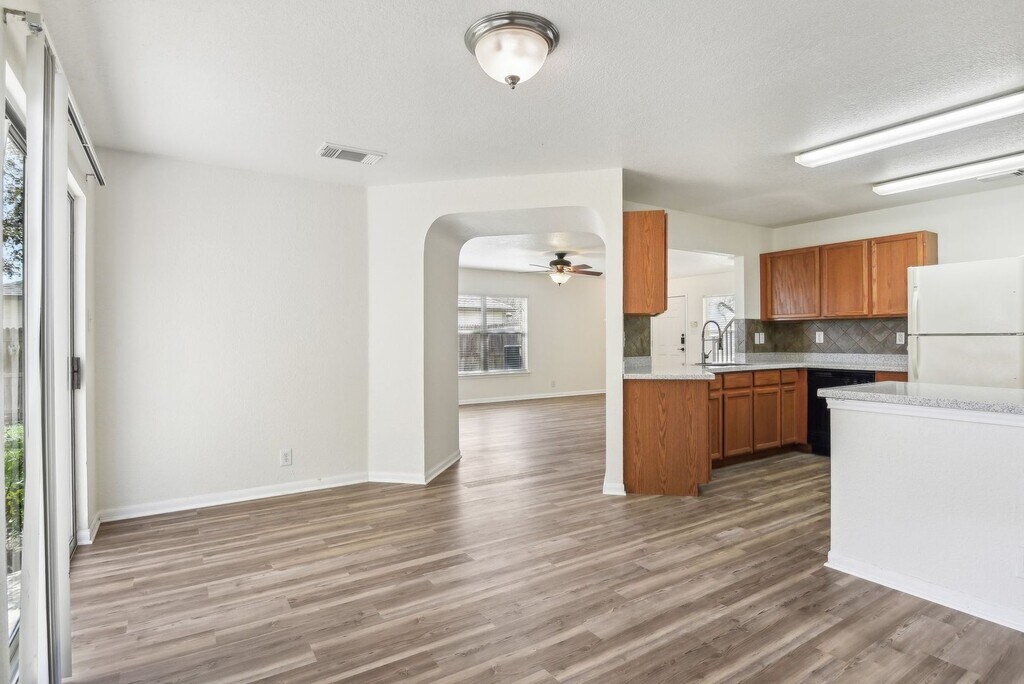 Welcome to 16216 Ike Lane Selma, Texas 78154, a beautifully updated home in the heart of Selma, TX. This property boasts three spacious bedrooms and two and a half bathrooms, providing ample space for comfort and convenience. The home has been freshly painted, giving it a clean and modern feel. The hard surface flooring throughout the house not only adds to the aesthetic appeal but also ensures easy maintenance. The large living room is perfect for entertaining or simply relaxing after a long day. The kitchen has been updated with new countertops, offering a sleek and stylish space for all your culinary adventures. This home perfectly combines style, comfort, and practicality, making it an ideal choice for those seeking a high-quality living experience.