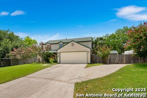 Move-in ready and the largest home in the neighborhood, this property sits atop a quiet hilltop cul-de-sac with thoughtful updates throughout. The spacious kitchen features granite countertops, stainless steel appliances, and a functional layout, while the living area boasts upgraded flooring and charming shiplap accents. The primary suite is conveniently located downstairs, and upstairs offers a large game room for flexible living. The oversized backyard is an entertainer's dream with a covered patio, hot tub, outdoor firepit, detached workshop, RV/boat pad with hookups, and an enclosed sunroom for additional flex space. Tech-forward touches include Govee holiday lights, a smart thermostat, smart switches, smart front door lock, Ring cameras, Ring doorbell, and an available alarm system, plus a robotic lawn mower (tenant-operated via smartphone). A stacked washer/dryer is included, and the garage accommodates a Tesla Model X with its own charger. Perfectly located just three houses down from Fox Run Elementary and within walking distance to Comanche Lookout Park, with trail access to the library and playground. Enjoy easy commuting with quick access to Loop 1604 and I-35.