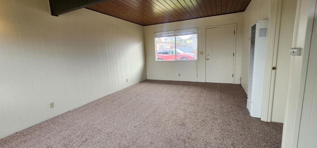 This 1 bedroom duplex offers, street parking, new carpet in the whole unit. The living room is open with lots of windows, the bedroom has good size window, new carpet, open and larger closet. The kitchen has a lot of cabinet space for the size with window out the back over looking the vacant lot. The bathroom is a full bath with tub/shower comb. The owner pays water/sewer/garbage/landscaping