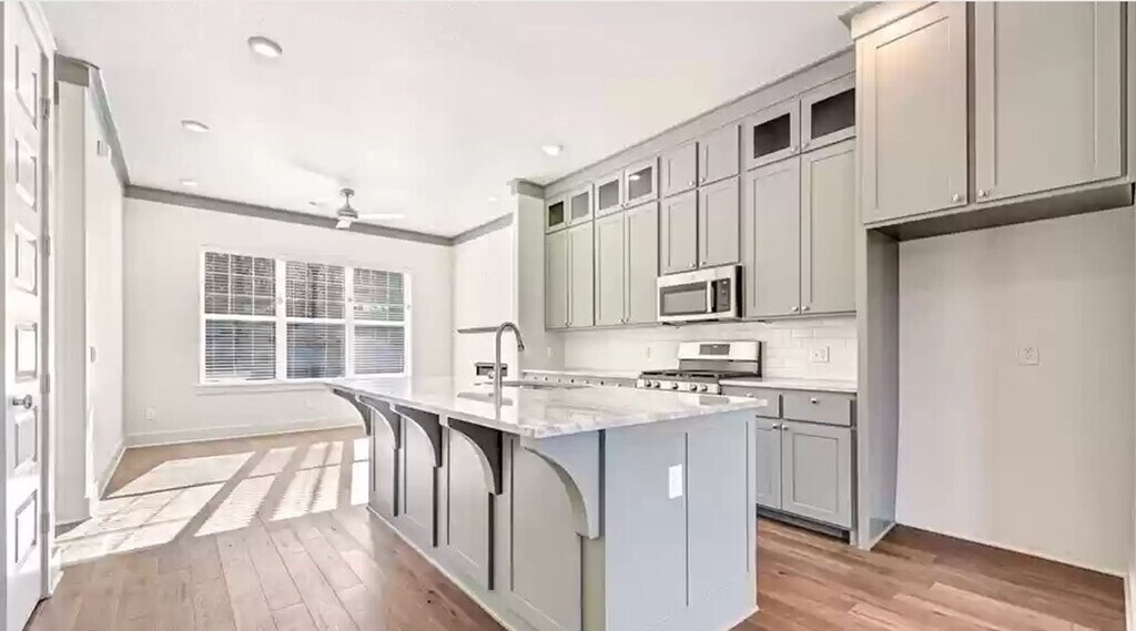 Gorgeous, brand new construction 3 bedroom, 2.5 bathroom home in the heart of East Fayetteville. Excellent Location! This home is walkable to Root Elementary School and close to all amenities East Fayetteville. Situated across the street from the future walking/biking greenway trail with access to all of NW Arkansas. Easy, low maintenance living. Dual climate zones. 10 foot ceilings on the main level, and 8 foot doors. High end window package and floor-to-ceiling kitchen cabinets. Huge eat-in kitchen island, pantry, and natural gas cooktop range/oven. The solid 2x6 construction adds to the quality/integrity of the build and greatly increases the energy efficiency of the home. Spacious master bedroom en suite is located on the main level with a large walk-in closet. Custom designer tiled bathrooms. Visit kra.rent to schedule a viewing or find more details. New stainless steel refrigerator to be added prior to occupancy.
