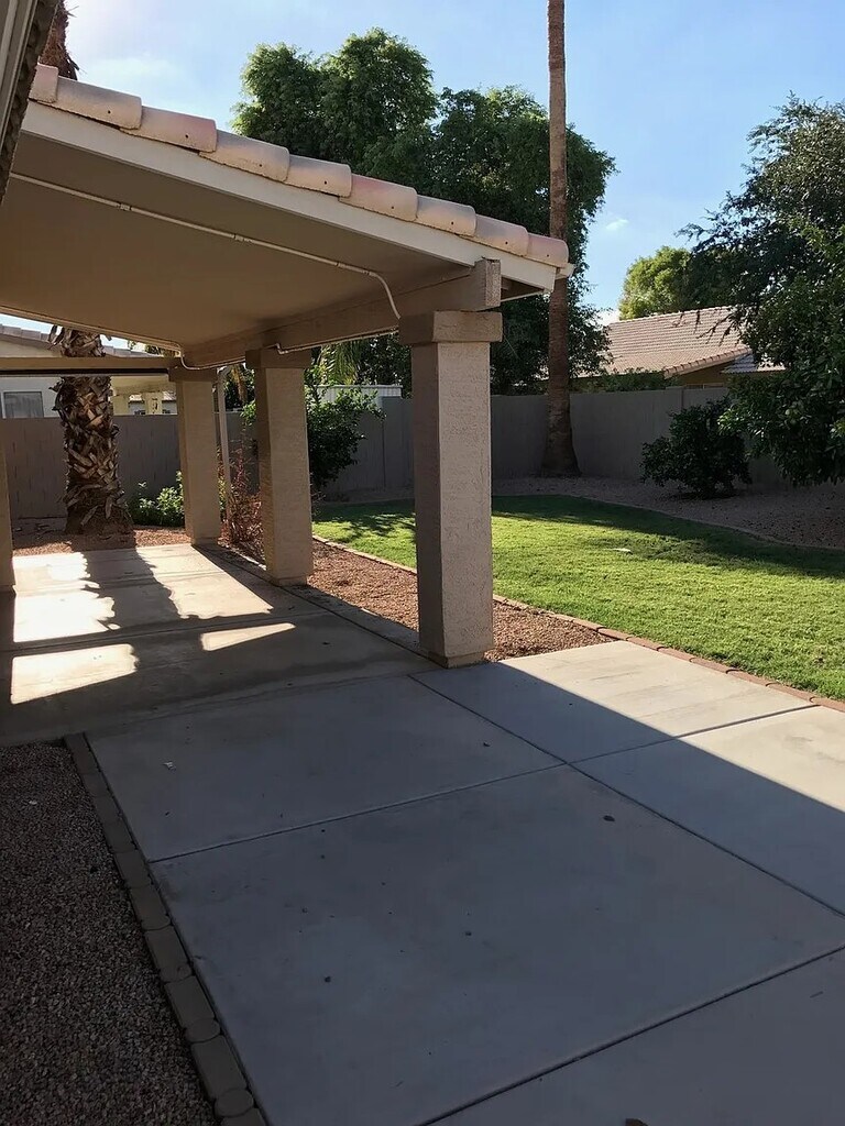3BR/2Ba house with a large open floor plan. 1593 SqFt home has a direct-access 2-car garage with epoxy floor. New Paint, New Carpet, New Appliances throughout! French doors open to a private yard with an expanded patio and misters to keep you cool while the kids play in the grass! The front yard has been redone with turf and pavers, and landscape lighting. Located conveniently near Chandler Fashion Center and Santan Village shopping and restaurants, freeways, and grocery stores.