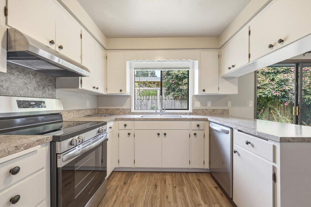 Nicely updated duplex. This unit offers 2 bedrooms and 1.75 baths. Open living room to dining area. Kitchen with lots of cabinets, NEW stainless refrigerator, electric range/oven and dishwasher. Utility room with washer and dryer - owner does not maintain, repair or replace. Nice large bedrooms, Master with .75 bath. Fenced back yard with patio area. One car garage. built in 1965 with 1064 sq.ft. On City water and sewer. Gas forced air heat. Updates include: vinyl plank flooring, kitchen face lift (hardware, counters), bath vanities, updated light fixtures and windows. Olympia School District E:Garfield M:Jefferson H:Capital. Pets: No Call to schedule an appointment to view this home. We do not accept comprehensive reusable tenant screening reports. Rental Qualifications: We use a third-party pet policy service, all applicants must create a tenant-only or a service animal profile. Applicants should please go to this link: Other fees: Re-key fee $75.00 payable upon approval Pet screening $0 for no animals/$0 for Assistance Animals