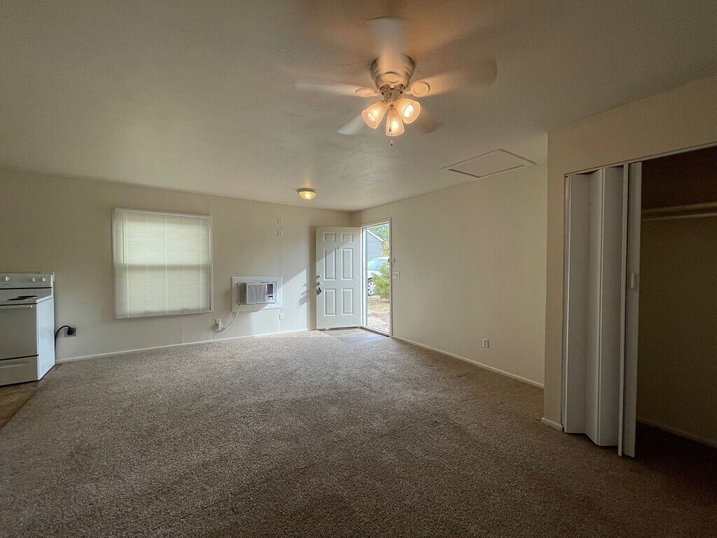 * Efficiency apt with 1 bathroom * Refrigerator and stove provided * Window heating and A/C unit * Fenced back yard * Tenant pays electric * Must have good rental history. $50 application fee per applicant over 18. * Income must be at least 3 times the rent amount.