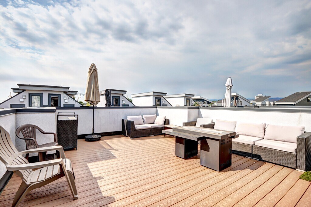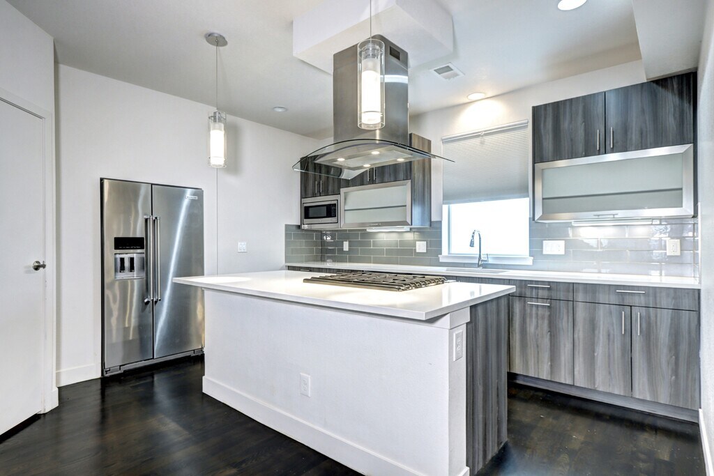 Luxury 3 story Urban town home with roof top deck in Sloans Lake! Enjoy the spectacular city and mountain views from the rooftop deck! Walking distance to Sloans lake, restaurants, grocery, bike trails, Highlands, and a quick drive to downtown. First level includes entry way, 1/2 bath, entrance to 2 car garage, and a 3rd bedroom that would be used more for an office or a work out room. Main level is an open floorplan and offers newer dark finished hardwood floors, 1/2 bath, living area with gas fireplace, and dining area. Modern kitchen with island, quartz counters, glass tile backsplash, stainless appliances, gas cooktop, soft close cabinets, pantry. Third level offers a large master bedroom with ensuite bathroom complete with a tile shower, double vanity, and private water closet. Laundry area on 3rd level with 2nd bed and bath. Rooftop deck complete with gas and water connections for grilling and cleaning. Water and trash included in rent. Pets welcome with associated pet fee! Denver Rental License #2025-BFN-0025030
