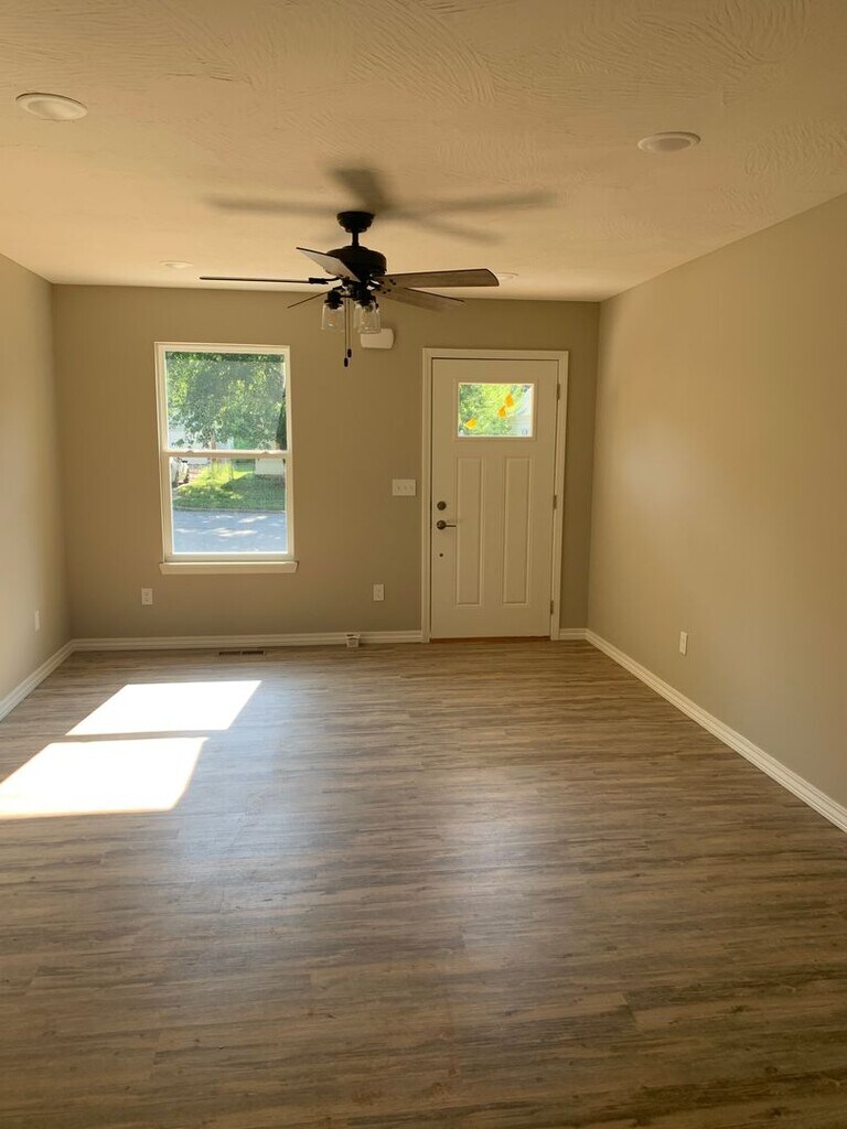 Step onto the charming covered front porch and into a bright, open-concept living and kitchen space featuring gleaming new hardwood floors throughout. The kitchen shines with brand new granite countertops, modern cabinetry, and a full suite of sleek black appliances, including an electric stove, microwave, and dishwasher—plus a spacious pantry for easy organization. This home offers three generously sized bedrooms, a dedicated laundry room, and a large hallway closet providing plenty of extra storage. Out back, enjoy a huge partially fenced yard—perfect for relaxing or entertaining—along with a covered patio ideal for outdoor living. *Residents benefit package $50.94 monthly *Up to 2 pets welcome! $250 NON-REFUNDABLE pet fee per pet *All pets subject to $25/month pet rent *Application fees are NON-REFUNDABLE