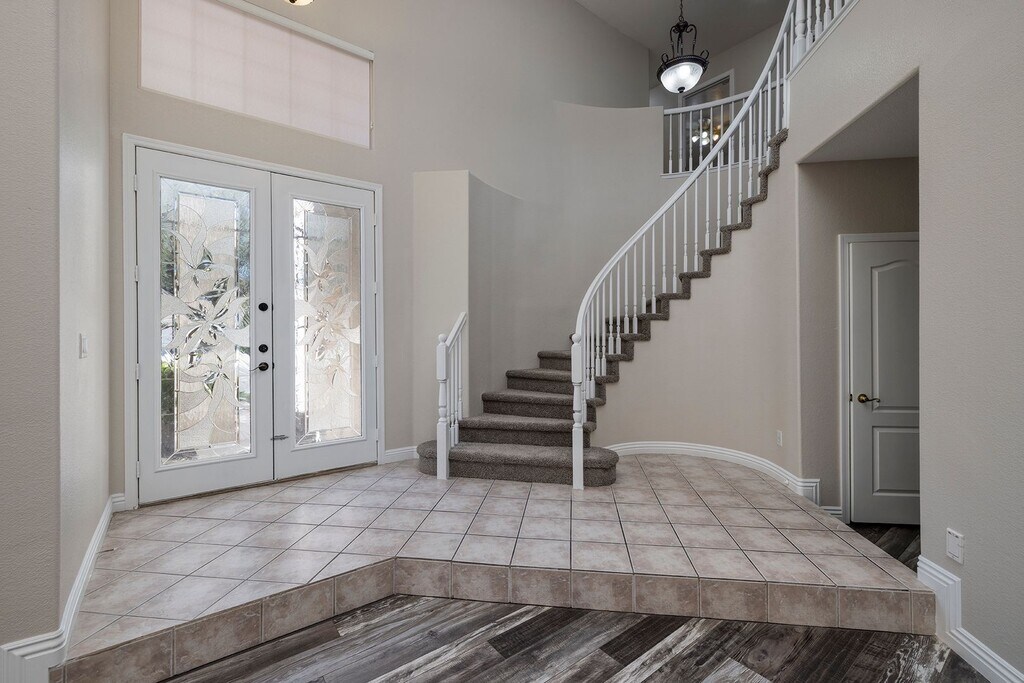 Welcome to the 2 Story Summerlin Home with Refreshing Pool & Lush Landscaping, a stunning residence located in the vibrant city of Las Vegas, NV. This spacious home boasts four bedrooms, plus a versatile den, and four full bathrooms. The property is situated across the street from a vast park, offering indoor soccer and a lively outdoor market every Wednesday. The home is nestled in the desirable Summerlin neighborhood, known for its walking trails and community spirit. The house features a three-car garage, providing ample space for vehicles and storage. The backyard is a private oasis, complete with a swimming pool equipped with a diving board, perfect for enjoying the Nevada sunshine. The home also includes a bedroom/den downstairs with a 3/4 bath across the hall, offering flexibility for your living arrangements. To top it all off, the property is equipped with solar panels, a sustainable and cost-effective energy solution. This home truly offers a blend of comfort, convenience, and luxury.