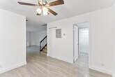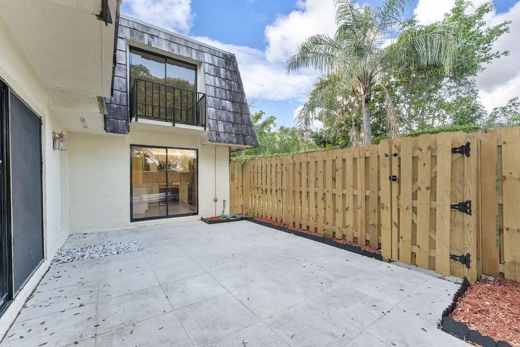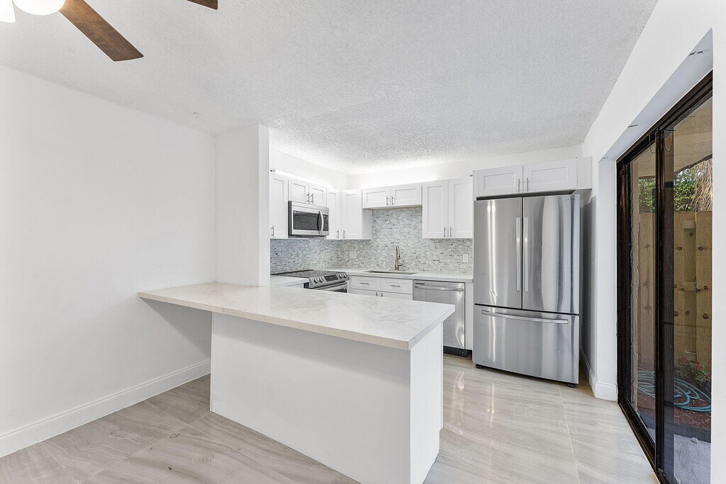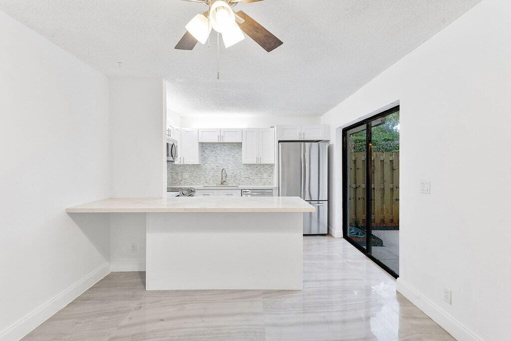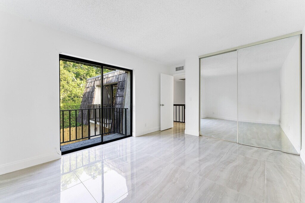 Welcome to your new home! This beautifully updated 2-bedroom, 2-bath townhouse is clean, modern, and full of natural light. As soon as you walk in, you'll notice the spacious open layout and shiny tile floors that run throughout the entire home. The kitchen is fully updated with white cabinets, quartz countertops, a stylish tile backsplash, and stainless steel appliances. It's perfect for cooking, entertaining, or just enjoying a quiet meal at home. Upstairs, both bedrooms are big and bright with large mirrored closets and private balconies. The bathrooms are completely redone with beautiful tile work and pebble stone shower floors that give a fresh, modern feel. Outside, enjoy your own private fenced-in patio