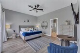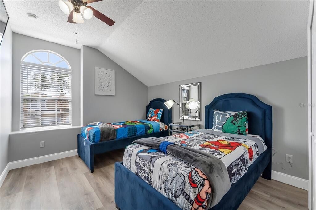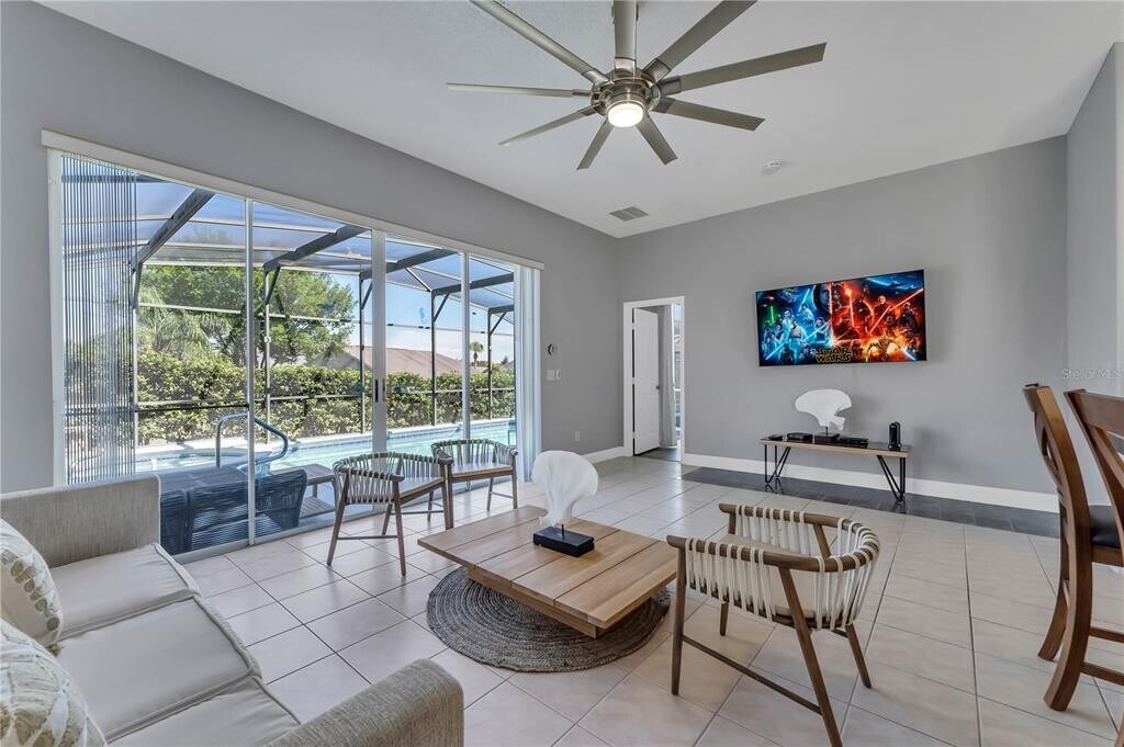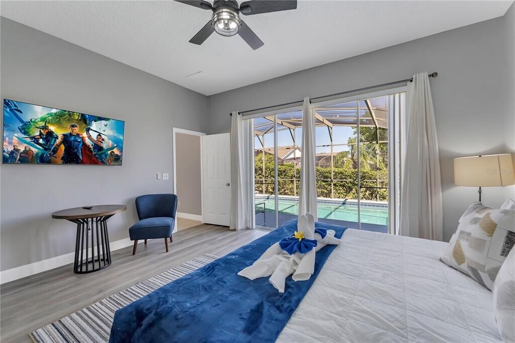Gorgeous 5-bedroom,4-bath fully furnished home in the Glenbrook Community! This spacious property features a fantastic floor plan with a separate living room and dining room at the front of the home,plus a combined family room and kitchen that overlooks the pool area. Enjoy a split-bedroom layout with two master suites,one upstairs and one downstairs,each with its own private en-suite bathroom for maximum comfort and privacy. Additionally,there is a bedroom and full bath located downstairs,while two more bedrooms and a shared full bath are upstairs,making this layout ideal for large or multi-generational families. The kitchen is a chef’s dream,boasting a beautiful quartz countertop. The home also includes a two-car garage and a stunning screened-in pool and hot tub,just steps from the family room. A pool heater ensures year-round enjoyment. Located in the desirable Glenbrook community,residents enjoy access to a clubhouse,business center,fitness room,game room,community pool,tennis court,and sand volleyball court. Conveniently close to theme parks,supermarkets,medical facilities,and schools,this home is perfect for both relaxation and convenience. MLS# G5104566
