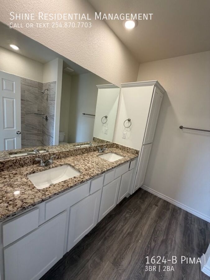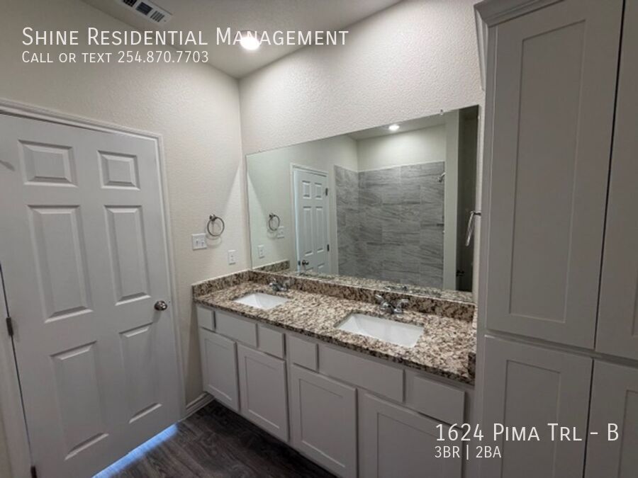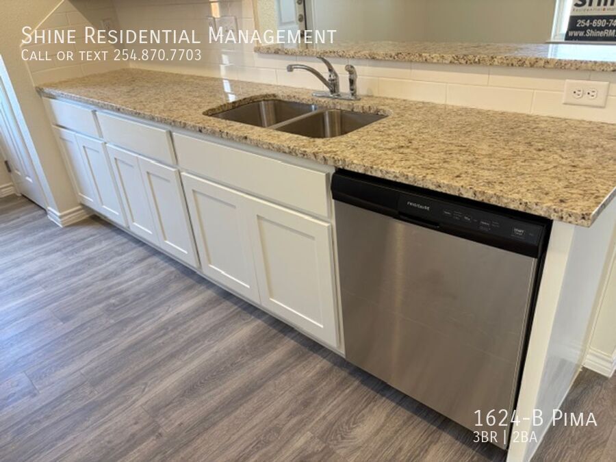 Welcome to your new home in Harker Heights, TX! This stunning 3-bedroom, 2-bathroom apartment is brimming with modern amenities and stylish finishes. The living space is enhanced by ceiling fans, central air and heat, and a digital thermostat for your comfort. The kitchen is a chef's dream with a black glass flat top oven, stainless dishwasher, and a microwave vent hood. Granite countertops and recessed lighting add a touch of elegance. The bathrooms are equally impressive, boasting marble countertops, tile shower surrounds, and a dual vanity in the master bath with a granite countertop. The master bathroom also features a stand-up shower with a tile surround. The apartment's aesthetic appeal is further enhanced by faux wood window blinds, vinyl wood plank floors, and inward folding windows. A wood privacy fence adds a touch of seclusion, while the one-car garage parking with a garage door opener and keypad entry provides convenience. This apartment is a perfect blend of style, comfort, and functionality. Don't miss out on this gem in Harker Heights, TX! Black Glass Flat Top Oven Black Refrigerator Central Air And Heat Digital Thermostat Dual Vanity In Master Bath With Granite Counter Top Faux Wood Window Blinds Granite Counter Tops Inward Folding Window Marble Counter Tops In Bathrooms Microwave Vent Hood One Car Garge Parking With Garage Door Opener And Key Pad Entry Recessed Lighting Stainless Dishwasher Stand Up Shower With Tile Surround In Master Bathroom Tile Shower Surround In Bathrooms Vinyl Wood Plank Floors Wood Privacy Fence