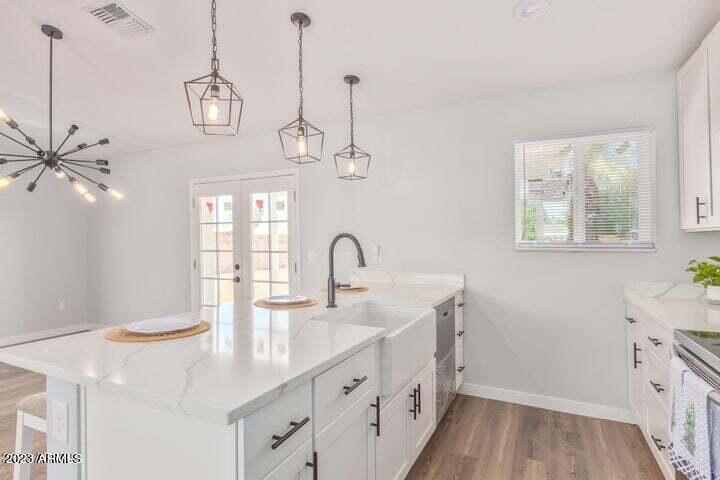AVAILABLE 8/1! Introducing your dream home in Tempe - a stunning 4-bed,2-bath gem that has been lovingly and thoroughly REMODELED to perfection. Nestled in a prime location,this property seamlessly blends simplicity with modern comfort to create a truly inviting and harmonious living space. Step inside and be captivated by the fabulous interior boasting a perfectly flowing open layout. The space is adorned with fresh,neutral paint,and wood-look tile flooring. Greeted by vaulted ceilings and an abundance of natural light,this home feels airy and spacious,providing a sense of tranquility. French doors leading to the back not only bring the outdoors in but also create a seamless connection between the indoor and outdoor living areas.