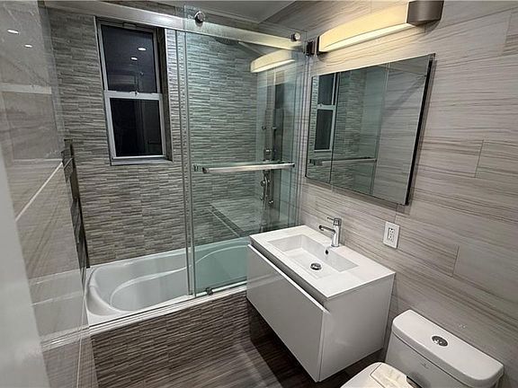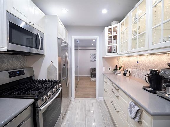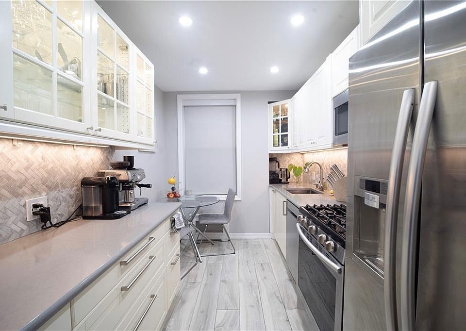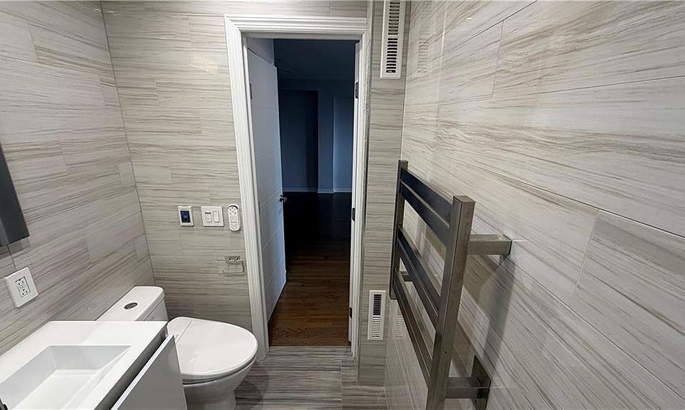 Beautiful large fully renovated one bedroom smart home, 3rd floor, corner unit with stunning front-facing water view. Large balcony with partial bay view, Italian tile throughout, heated floors, recessed lights, motorized shades, eat-in kitchen, heated towel rack, recessed electric fireplace with heat, hardwood parquet floors, stainless-steel appliances, large custom built closets with 8 foot mirror doors, door lock with fingerprint/code/key option, surround sound system in wall and ceiling, windows in bathroom and kitchen, AC with heat, gas included, night-time door man, swimming pool, bike room, garage, 2 laundry rooms, steps away from all stores, restaurants, beach, subway/bus transportation.