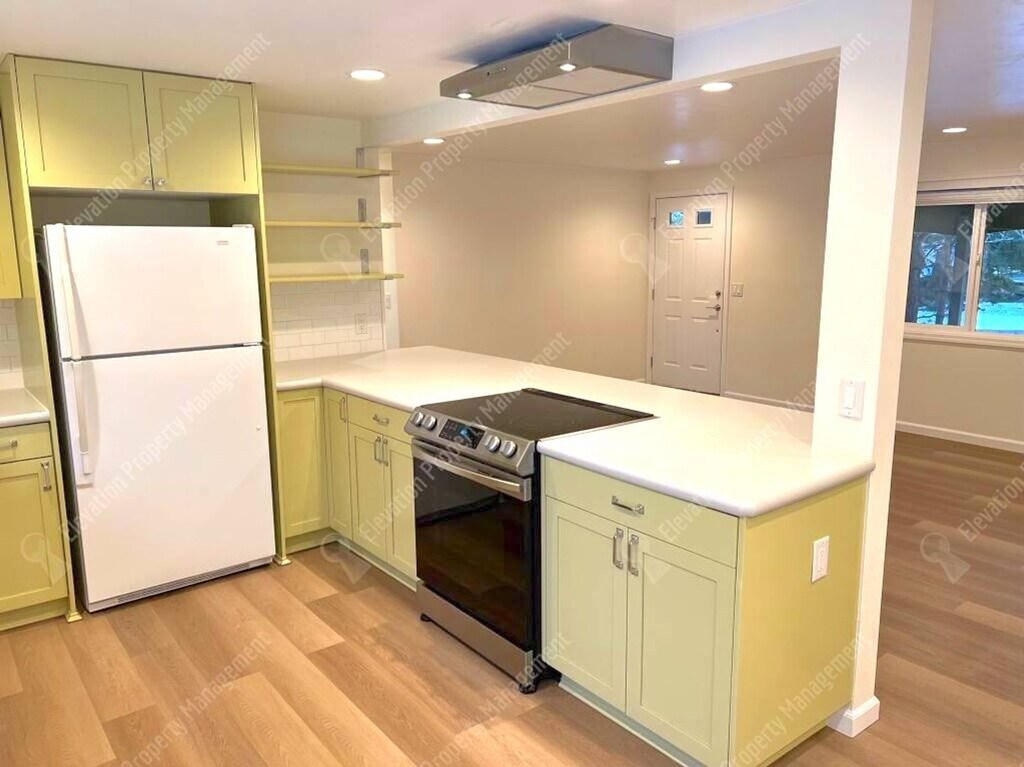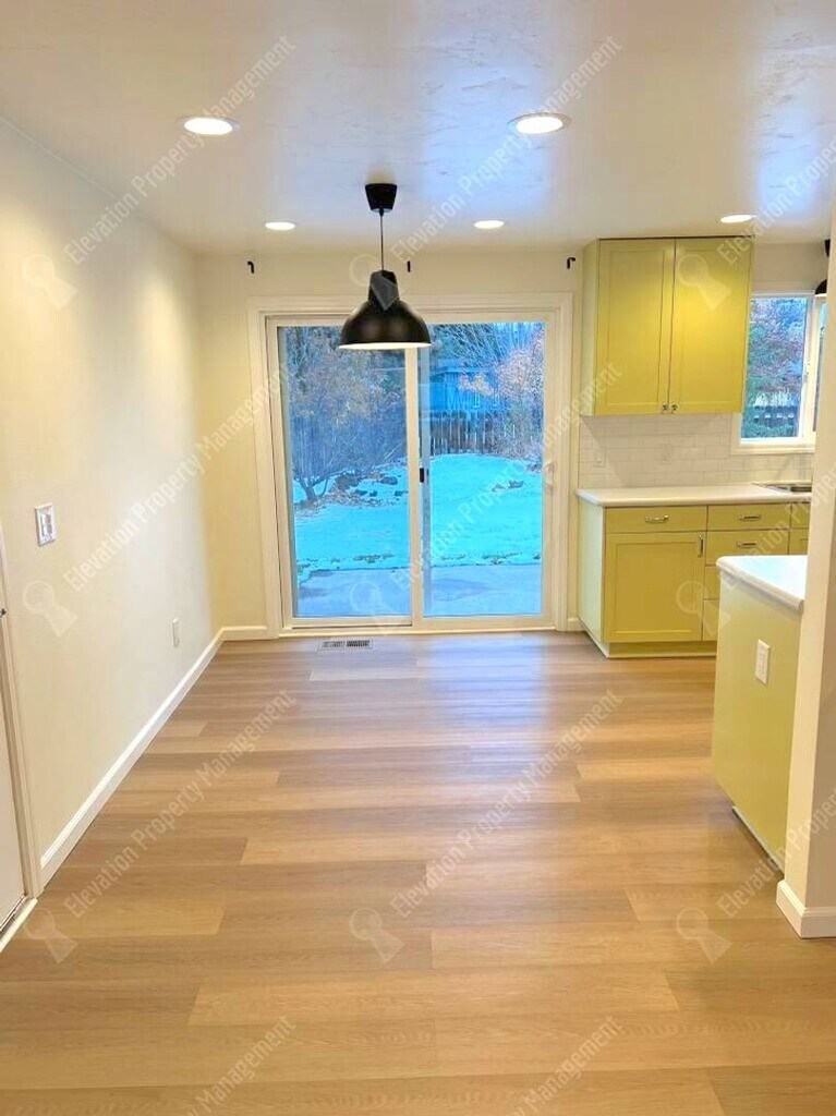 This 3 BR/2 BA home has been recently updated with wide-plank flooring, newly painted and restored cabinets, new countertops and carpet in the bedrooms plus a spacious backyard. Nestled in a great east side neighborhood on a quiet cul-de-sac street near Pilot Butte, this single-level home is just a few blocks from one of Bend's best parks: Hollinshead Park. It's a short drive to Safeway and Whole Foods as well as some great restaurants and food truck lots. The open floor plan welcomes you with a large family room right when you walk in, with a gas fireplace for cozy winter nights. The kitchen features tons of counter and cabinet space and includes all major appliances. Just off the family room is a home office den with double-doors and laminate flooring, and down the hall are three bedrooms including a primary suite with spacious closets. Both bathrooms have been remodeled with stylish sinks and vanities. What really sets this home apart is the incredible outdoor space. Though the backyard is not fully-enclosed, the lot size is spacious and offers lots of privacy and scenery to appreciate right from your own backyard. There is a neighborhood buck who likes to often rest in the back corner of the lot munching from the trees. If you desire tranquility yet the convenience of city living, this home could be a great option and likely won’t last long!