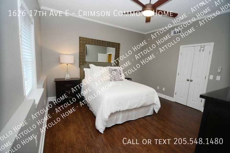 ALL UTILITIES INCLUDED! This is a fully furnished luxurious 6-bedroom, 4-bath home in the middle of town, minutes away from University of Alabama campus and DCH. 2 beautifully renovated private baths and 2 shared baths. Each Room Features: • 46" Flat Screen TV • Queen Bedroom set • Curtains The Home Features (everything pictured): • Laundry upstairs and downstairs • 2 living rooms with large HDTV • Limitless Hot water • Patio and Grill (Gas provided) Service Package Includes: • Power • Water • Gas • High-speed internet • Lawn Service This is the perfect living arrangement for 6 friends looking for a quiet and fully furnished living space, only 5 minutes from UA. The common area is spacious and newly decorated; all 6 bedrooms share the dining room and kitchen. Each level has a laundry room and living room for convenience -- one upstairs and one downstairs. Electricity Fully Furnished Gas High Speed Internet Online Maintenance Requests Online Payments Online Tenant Portal Utilities Included Water