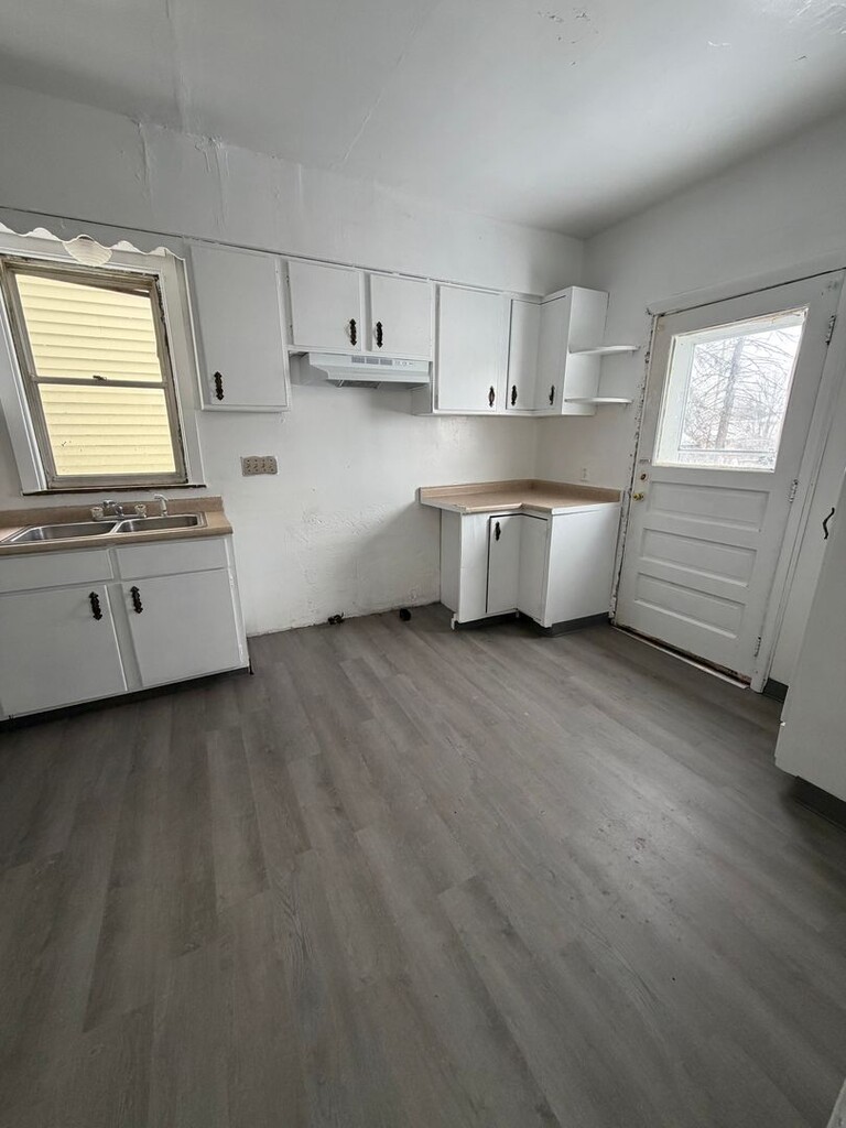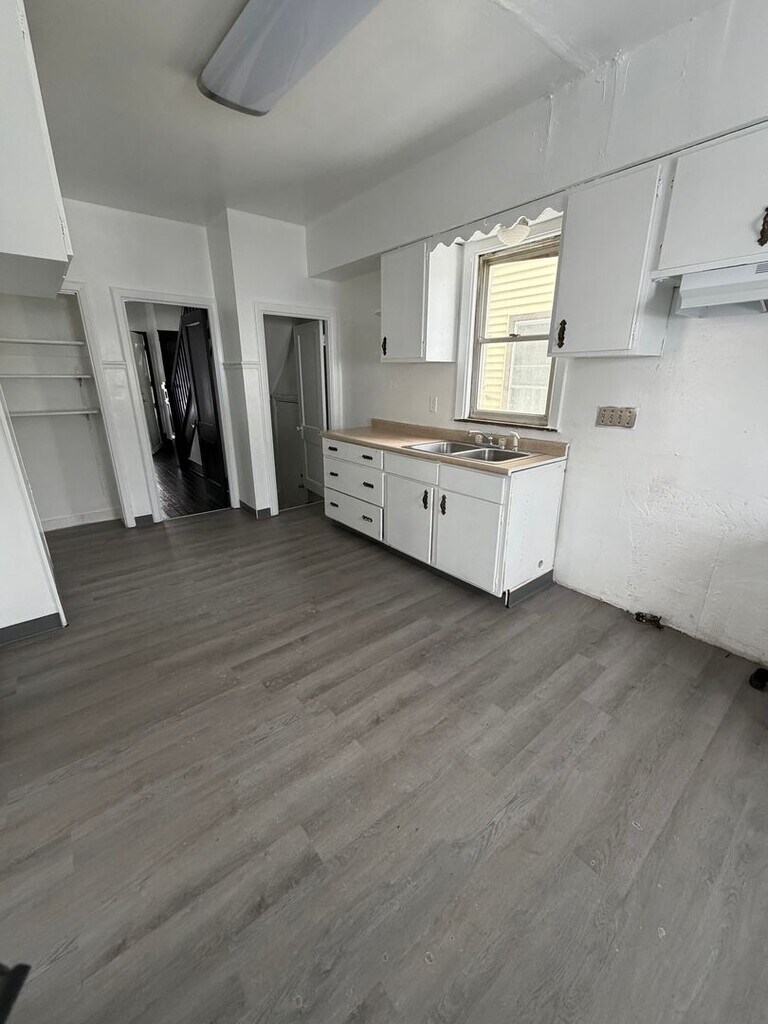 Three bedroom house with two-car detached garage. Large living room and dining room. Kitchen is spacious with ample cabinet space. Back door off of kitchen leads to a deck that faces backyard. All three bedrooms are located on the second floor. Full unfinished basement with washer/dryer hookups. Street parking is also available. Security deposit required with one year lease. Tenant pays gas, electric and water. Tenant responsible for lawn care and snow removal. This house is not HUD approved and is not pet friendly .