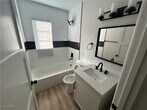 Renovated duplex in a modern design. 1 bedroom 1 bath. Wood/laminate flooring in living/kitchen, carpet in bedroom. Stainless kitchen appliances. Upgraded bathroom fixtures, waterfall shower head, hexagon tile details. Cozy backyard. Ample street parking. A Small dog or cat considered with additional deposit, max total weight 22 lbs at maturity. Washer n Dryer included.