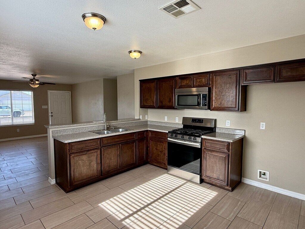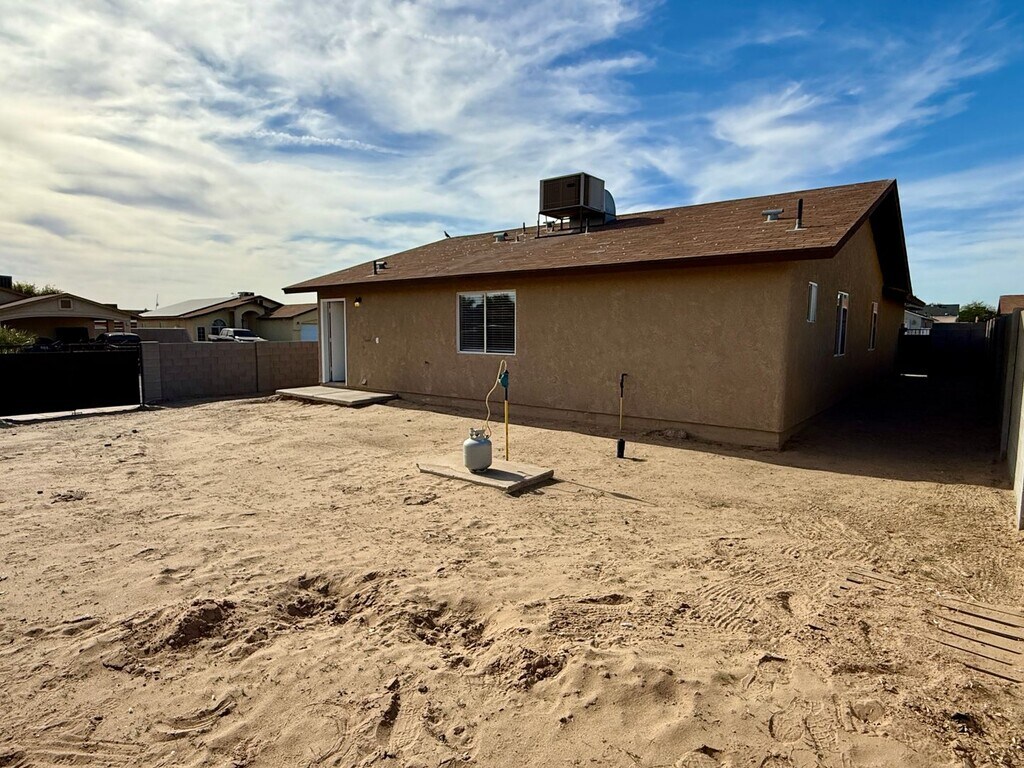 Welcome to the Four Bedroom Corner Lot San Luis Home, a gem nestled in the heart of San Luis, AZ. This home boasts four spacious bedrooms and two full bathrooms, offering ample space for comfort and relaxation. The property is fully fenced, providing an added layer of security and privacy. The home features a two-car garage, perfect for vehicle storage or a workshop. The corner lot location allows for a larger backyard, ideal for outdoor activities or gardening. Inside, you'll find beautiful tile flooring throughout, ceiling fans for those warmer days, and blinds for privacy. The home also features double gates for easy access. The elevated kitchen bar is perfect for casual dining or entertaining guests. The master bedroom comes with a walk-in closet, providing plenty of storage space. The home also offers indoor laundry connections for your convenience. The two-tone paint adds a touch of elegance and sophistication to the home. This property is a perfect blend of comfort, style, and practicality. Don't miss out on this fantastic opportunity!