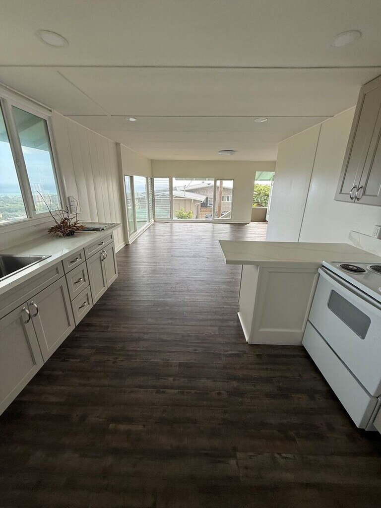 Enjoy this beautifully renovated 2-bedroom, 1-bath home offering approximately 912 sq. ft. of comfortable living space with a breathtaking view of Kahala’s mountains. - $ 3200 per month. Features: Recently renovated interior Brand-new kitchen appliances Bright, open living area with plenty of natural light Two assigned parking spaces plus one covered parking Utilities: water and sewer included; electricity and internet paid by tenant Quiet, private location with scenic views Conveniently located near Kahala Mall, schools, shopping, and major routes This home combines island charm, comfort, and convenience, making it a perfect place to call home.