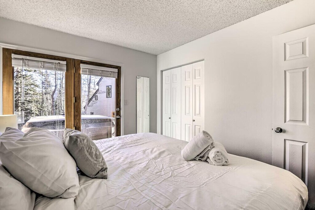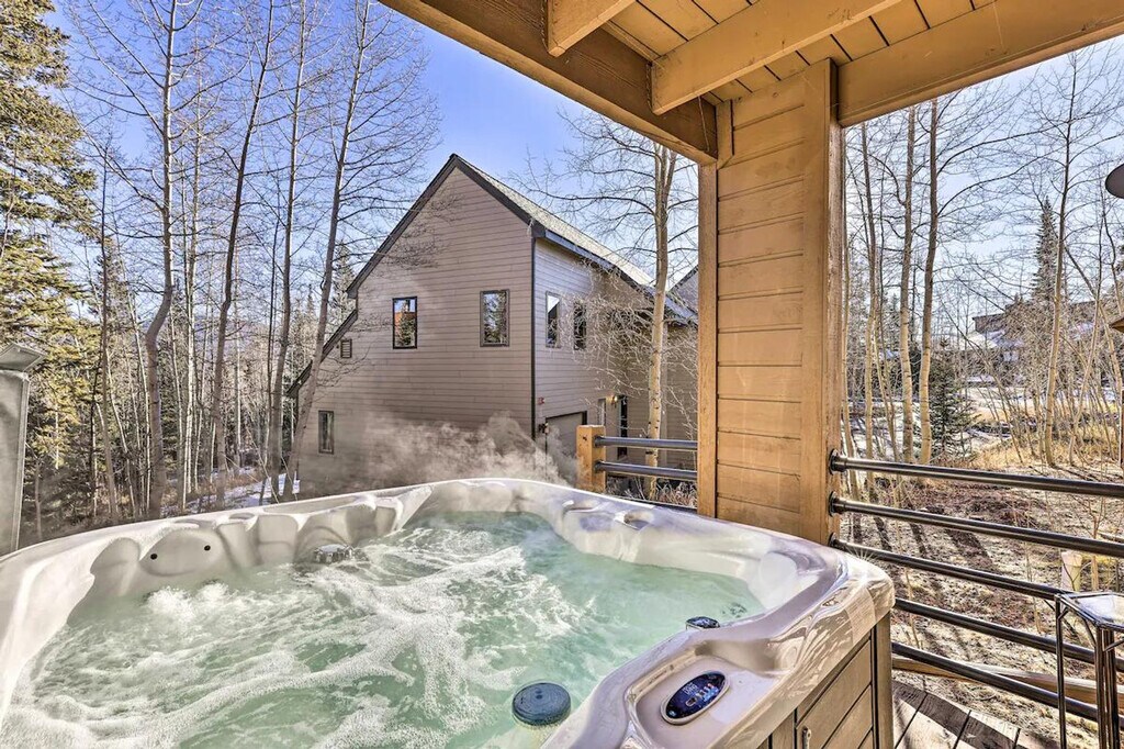 The advertised rate of $5,113/month is the lowest available price, based on a 1 month(s) stay with a move-in date of April 17, 2026. Rates vary depending on the duration of stay, season, and other parameters. For exact pricing and additional pricing components, please visit our website and enter your desired move-in and move-out dates. The rate is applicable when billed upfront; it can be higher if billed in multiple payments. Feel at home in this 4-bedroom, 2.5-bath townhome in Silverthorne, perfect for an unforgettable Rocky Mountain ski trip. Please note that stairs are required to access the living areas, bedrooms, and bathrooms. This cozy retreat features a private hot tub, multiple patio spaces, a fully equipped kitchen, and a wood-burning fireplace. The kitchen is fully equipped and includes a Keurig coffee maker, cooking utensils, a Crockpot, complimentary spices, dishware and flatware, a dishwasher, a garbage disposal, a hot water pot, an ice maker, a microwave, a toaster, and a water filter. Other amenities include a smart TV, ceiling fans, a breakfast bar with seating, a dining table, free Wi-Fi, complimentary toiletries, a hair dryer, hangers, humidifiers, in-unit laundry machines, an iron and board, linens and towels, and trash bags and paper towels. There is also a gas grill for outdoor cooking. Centrally located within a short drive to the world-class ski resorts of Summit County, this charming mountain escape provides easy access to Breckenridge, Copper Mountain, and Keystone. A free local shuttle service is available for guest use located near the townhome. Smoking, pets, events, parties, and large gatherings are not allowed. The property does have cell phone service, but it may be spotty since the property is located in a rural area. Bears are commonly present in the area, so food and trash should not be left outdoors. Make sure the bear-proof trash bin in front of the home is properly closed and latched shut. The property does not offer air conditioning. Be sure to close the hot tub lid after each use. There are 2 exterior security cameras facing the driveway and front door. There is a free local shuttle service available for guest use located near the townhome. [SI]