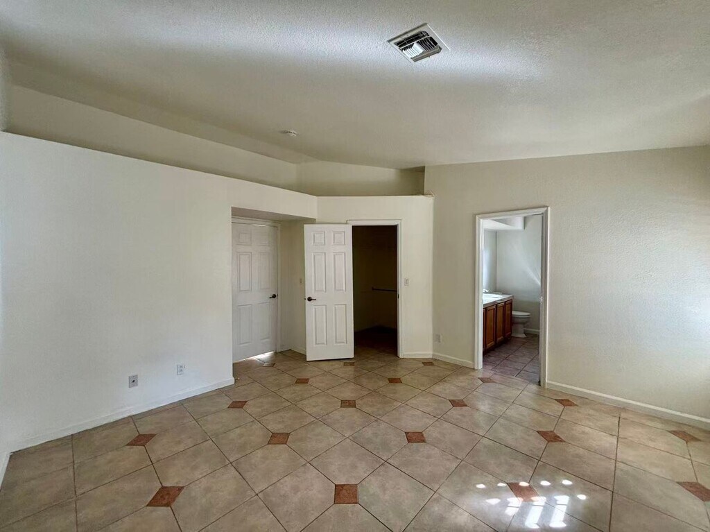 Beautiful one-story single-family home with 3 bedrooms, 2.5 bathrooms with covered patio. Spacious living room with vaulted ceiling and fireplace. Tile goes through the whole house. The airy U-shaped kitchen connects the living room and dining area which has a breakfast bar, and ample counter space for your countertop appliances. The second bedroom has its own bathroom. Vaulted ceiling in the master bedroom with a walking closet. The master bath has dual sinks and a door to the backyard. The owner accepts small pets only. Referral Agent Commission: $400. Please contact the listing OFFICE for any questions. Rent AS-IS. Any applicant over 18 is required to submit an application with a FRONT & BACK copy of their Driver's License or ID card, pay stubs for the past 2 months AND bank statements for the past 2 months, and a $65 application fee (NON-REFUNDABLE). TENANT is responsible to pay a $20 monthly trash fee on top of monthly rent. $300 pet deposit per pet (small pets), $60 key deposit, $300 clean deposit, $300 utility deposit. Please go to to submit an application. Req: All applicants with a minimum 600 credit score and monthly household income 3x the rent amount.