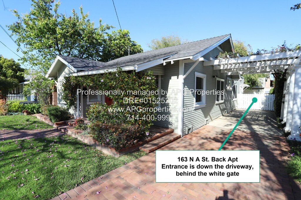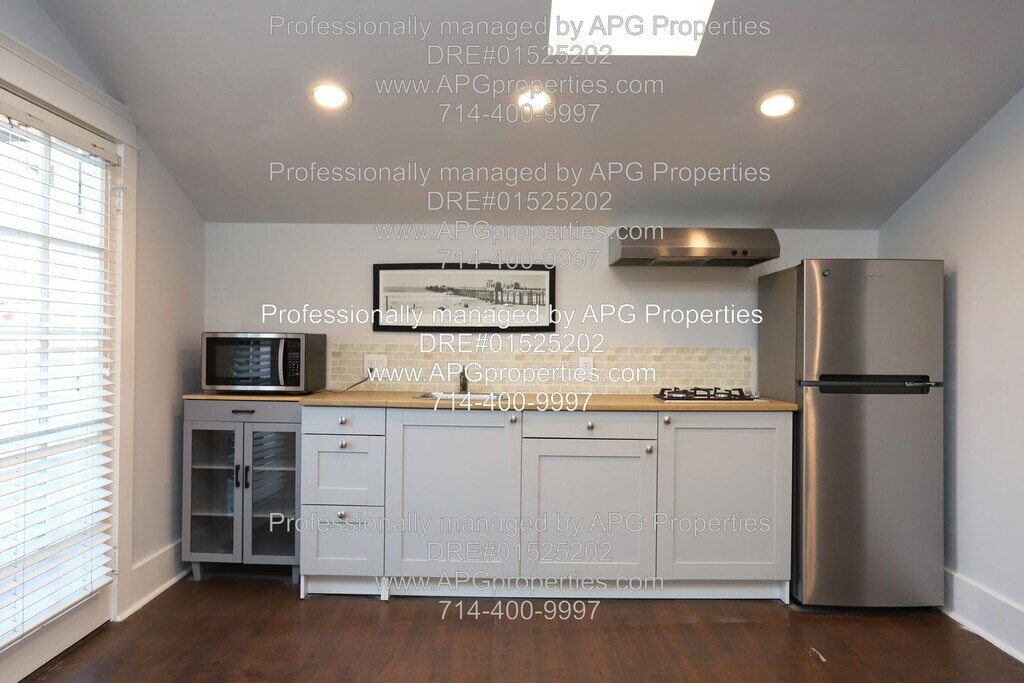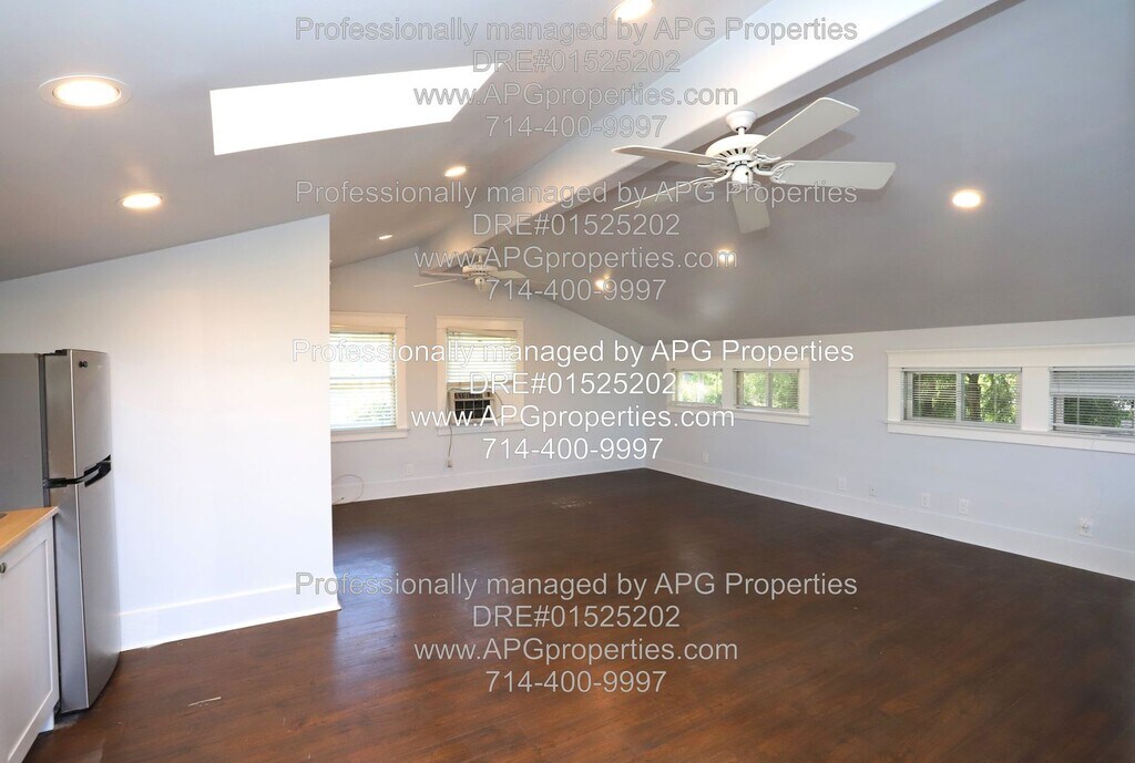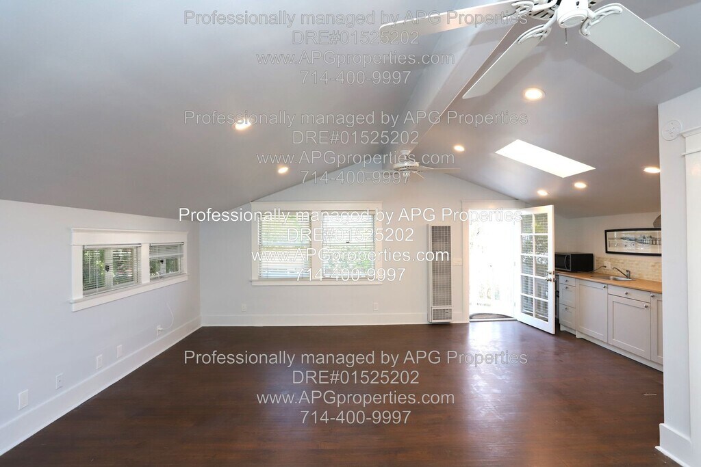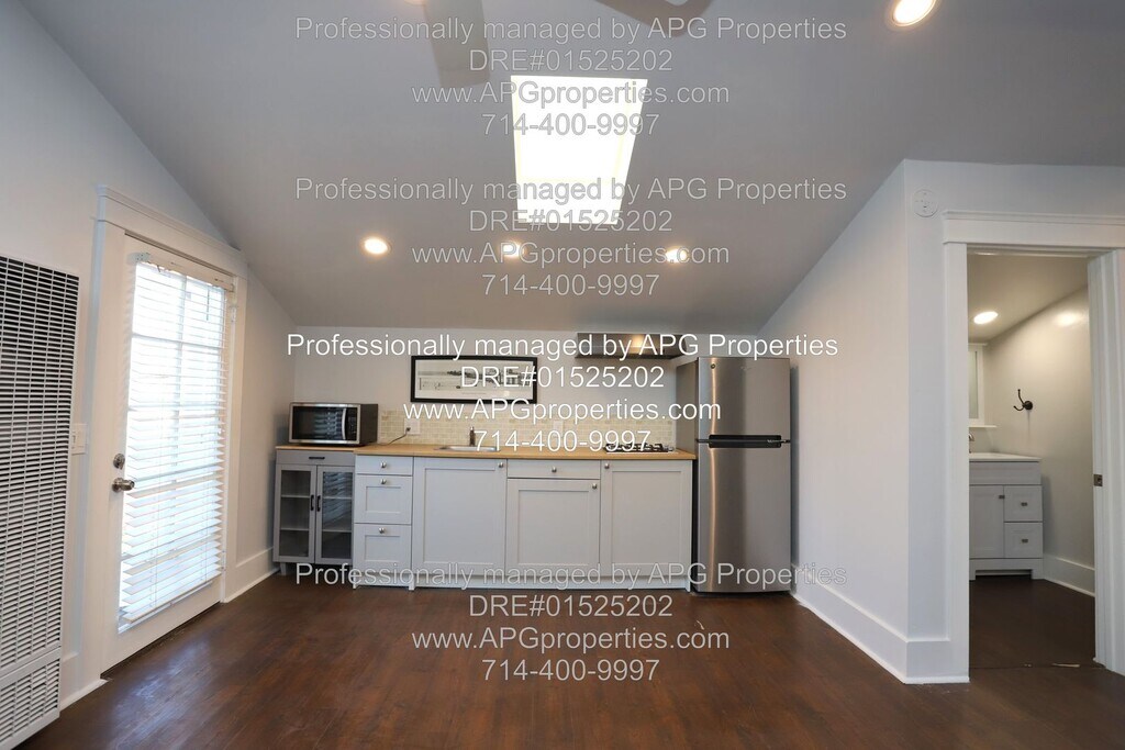 Charming Studio Apartment near Old Town Tustin - Utilities included! APG Properties - DRE#01525202 PLEASE DO NOT DISTURB THE RESIDENTS IN THE FRONT HOUSE Upstairs apartment above the garage with private entry Recently remodeled with wood floors and high ceilings Recessed lighting and new ceiling fans Wall unit A/C Dual pane windows with blinds Full kitchen with a refrigerator included Utilities are included - Electricity, Gas, Internet, Trash, Water Gardening included Shared laundry appliances in the garage Street parking only - no parking in the driveway or garage available No garage storage available Tenant will need to use a PO box for mail delivery Walking distance to Old Town Tustin Easy access to the 55, 5, and 22 freeways NON-SMOKING HOME $1,995 Security Deposit can be paid in two payments This home is generally Pet Restricted, however there may be exceptions under Federal or State law. AVOID RENTAL SCAMS - APG Properties is the property manager for the owner. This home can be viewed on our website for verification. Listings for this home from any person or entity other than APG Properties may be fraudulent. We do not advertise on Facebook, Craigslist, or any room-for-rent sites. We will not ask for cash, wire transfers, or any payments to view or hold the property. - For your security, please do not give anyone money or sign a contract with anyone other than APG Properties. - Applications are only accepted through our website. This Property is offered by APG Properties DRE #01525202 Equal Opportunity Housing. We accept all sources of income. Please call or email Check out our website at RENTAL CRITERIA FOR APPLICANTS: Credit Score: Each Applicant must have a credit score of at least 675. No Evictions Rental History: Each Applicant should have no more than one late rent payment in the past 12 months, with verifiable rental history for the last three years, confirmed directly with landlords Employment Duration: Each Applicant must have been employed in their current position for at least 12 months Income Requirement: NET combined group income must be at least 2.5 times the monthly rent. Applicants utilizing housing vouchers must demonstrate income sufficient to meet their portion of the rent, in line with the voucher program’s guidelines. Income Verification: Income is verified through the most recent 3 months' pay stubs and W-2 forms, directly confirmed with the employer. Self-employed applicants must provide at least two years of signed personal and business tax returns for verification and/or any verifiable 1099s or K-1 forms. No Co-signers: We are not accepting cosigners at this property Complete the Pet Screening information, if you have pet(s), no pet(s), or Assistance Animal(s). The Website is Some property application requirements may vary. Please see the property posting on our website for specific information. Electricity Gardening Gas Internet Trash Water