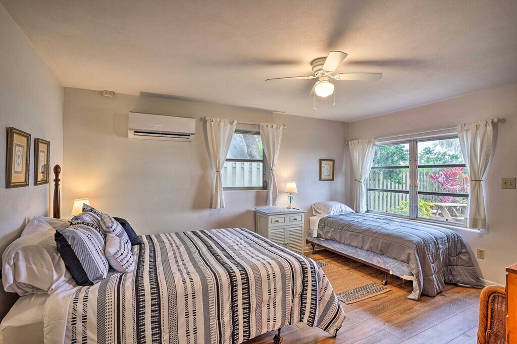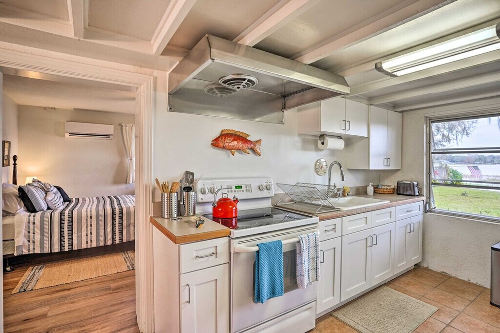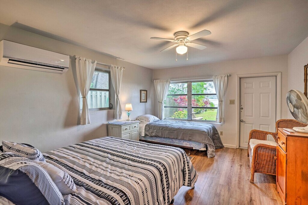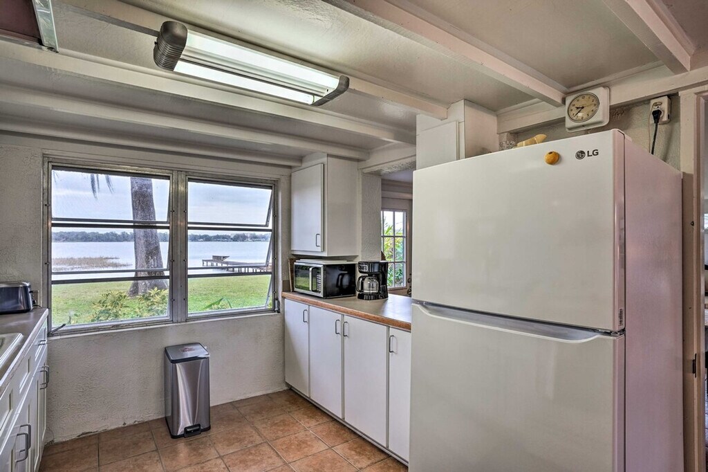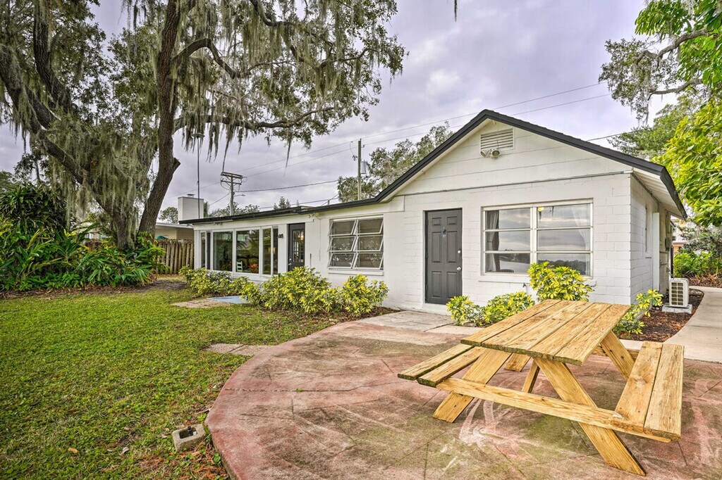 Feel at home in this charming Winter Haven vacation rental, situated directly on Lake Mirror, perfect for experiencing lake life and endless water sport recreation. This 2-bedroom, 2-bath abode offers a relaxing home away from home. This apartment features a smart TV, laptop-friendly workspace, multiple dining areas, a patio, and a yard with direct lake access. The well-equipped kitchen includes a fridge, stove, coffee maker, microwave, cooking basics, toaster, dishware, flatware, trash bags, and paper towels. You'll also find free Wi-Fi, a washer and dryer, air conditioning units, complimentary toiletries, a hair dryer, linens, towels, an iron, an ironing board, and ceiling fans. Parking is available in the driveway for two vehicles and in the carport for one vehicle. Whether you spend your days fishing off the dock, exploring the lake, or watching local wildlife, you’ll love the beautiful lakefront views from this location. This property may not be suitable for young children due to the lack of child-friendly features and unfenced lake access. Smoking, pets, events, parties, and large gatherings are not allowed. Guests must be at least 25 years old to book, and a photo ID may be required upon check-in. [SI]