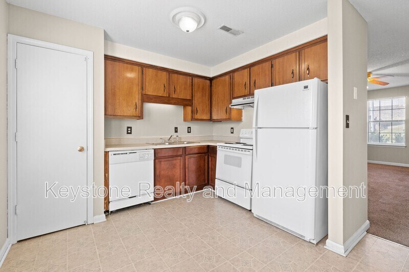 This all-brick 2-bedroom, 1.5-bath townhome features spacious rooms with beautiful laminate hardwood flooring. The kitchen offers tile flooring and comes equipped with a stove, refrigerator, and dishwasher. Washer and dryer connections are included for your convenience. Enjoy a semi-private patio at the rear of the unit, along with a generous outdoor area perfect for relaxing or entertaining. Sorry, pets are not permitted in this unit.