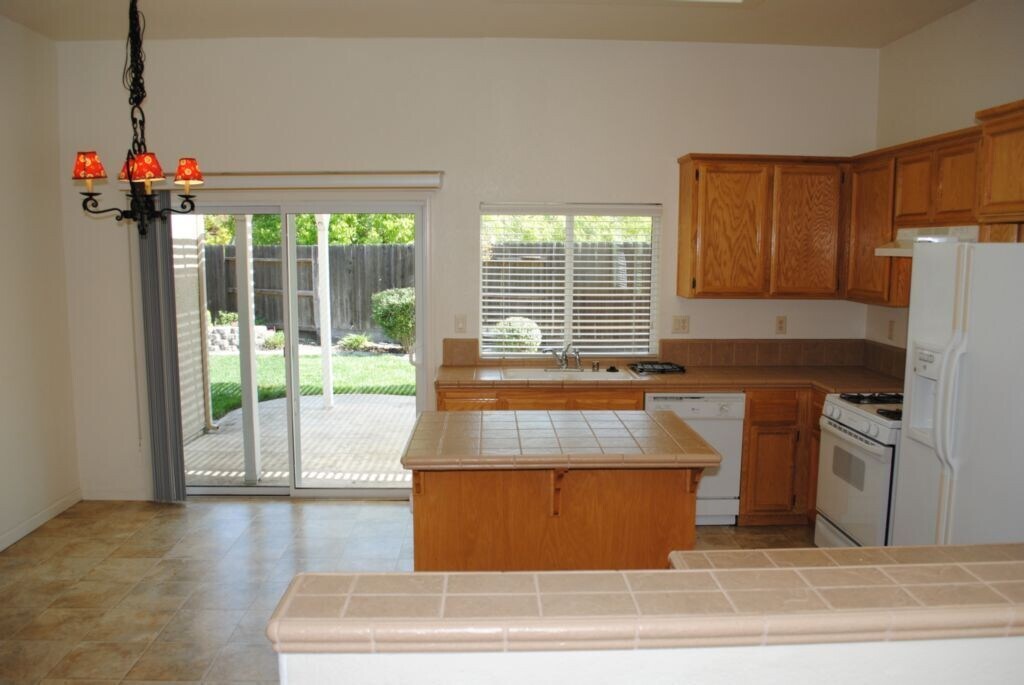 The single-story layout gives this home an easy, comfortable flow, with the great room and dining area connecting naturally under a vaulted ceiling that adds a bit of openness without feeling oversized. The kitchen is set up for everyday convenience, with tile counters, a roomy pantry, and an island that adds extra space to spread out when you need it. It blends smoothly with the main living areas so everything feels connected. Three bedrooms offer comfortable, flexible space, and the primary suite includes a walk-in closet for added storage. Out back, a fenced yard and covered patio provide a private place to unwind, with automatic sprinklers helping keep things simple. A two-car garage, driveway, and street parking offer useful options. Resident Benefits Package (RBP) - $50/month All RNB residents for this property are enrolled in the Resident Benefits Package which includes a variety of services designed to enhance your living experience and help manage your home efficiently. More details will be provided upon request.