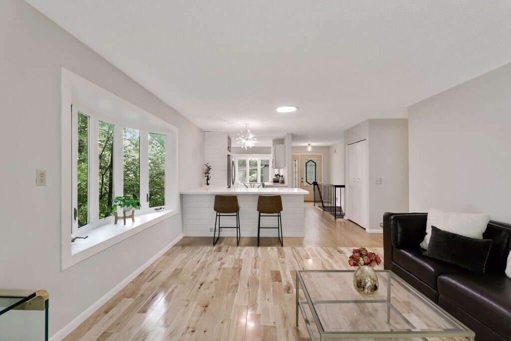 Don't miss out on this gorgeous, recently renovated townhouse in high demand Chelsea Woods. End unit surrounded by nature with great views. Wood burning fireplace in walk out level. Hardwood floors throughout. Association provides access to pools, tennis courts, pickle ball court, basketball court, and trails. 5 minutes to downtown Wayzata and Lake Minnetonka. High demand location.
