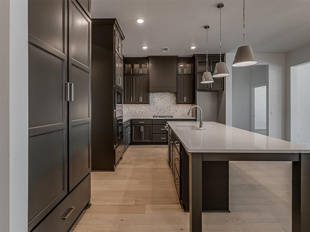 Luxury New Home with Cathedral Ceiling and Designer Finishes This beautifully designed new home features a grand entryway filled with natural light and an open flow into the study,kitchen,and living areas. The focal point of the living space is a stunning wall of windows framed by a soaring cathedral ceiling with a wood beam and a statement fireplace. The kitchen offers a large island with seating,floor-to-ceiling cabinetry with glass fronts,and a built-in gas range. The spa-like primary bath includes a Euro soaking tub,frameless glass shower,dual vanities,and a walk-in closet that connects to the laundry. With custom wood details throughout,including wood flooring,built-ins,and cabinetry,this home offers both elegance and thoughtful functionality. Bixby Village offers stunning new homes in a prime Tulsa suburb,designed to suit your lifestyle. Enjoy amenities like parks and splash pads that make outdoor recreation effortless. Conveniently located across the street from the highly regarded Bixby Central Intermediate School and High School,this neighborhood provides unmatched convenience. Discover your dream home in Bixby Village,where comfort and accessibility come together seamlessly.