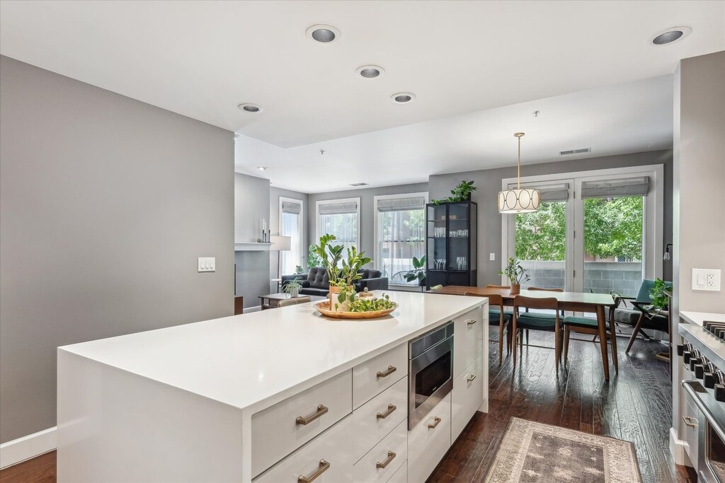 This home enchants upon entry as sunlight spills in through glorious almost floor to ceiling windows! Neutral paint color makes a stunning backdrop for inspired decorating... modern, traditional or artistic vibes come alive in this space. Put on your slippery socks and slide across the glistening hardwood floors to your heart’s delight. Even better yet roll out the yoga mat to do daily sun salutations in the beautiful sunlight space or on the wrap-around patio. The kitchen island & dining area welcomes Sunday brunch w/ friends. Washer & Dryer incl. Plenty of fun activities right outside your front door like Ping-Pong at Ace Restaurant, Saturday’s East High farmer’s market, Vegan dining at Watercourse or pick up fresh veggies/fruits at Marzck’s grocery. This unit comes with 2 parking spaces and 1 storage unit.