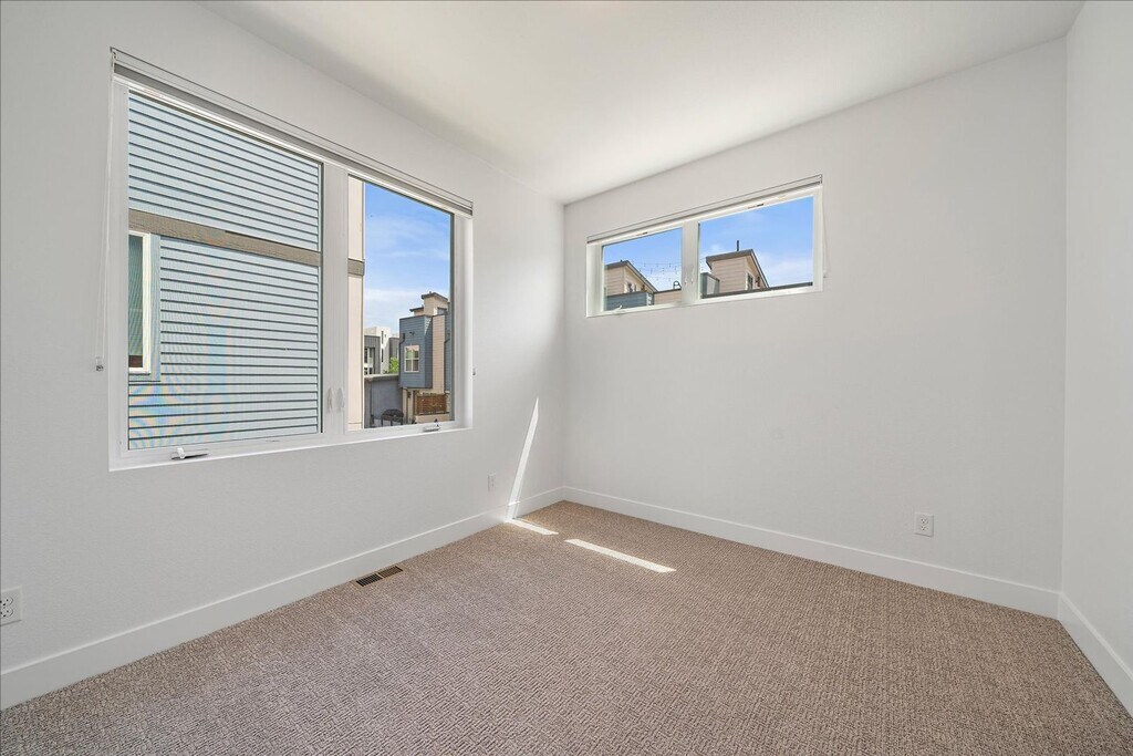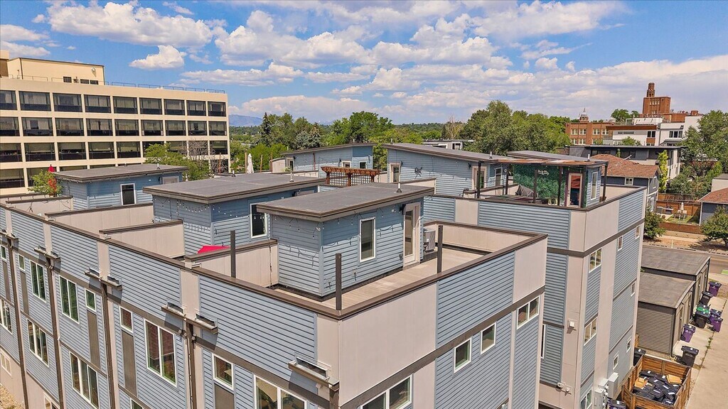 Live just one block from Sloan’s Lake in this picture-perfect, end-unit townhome featuring unbeatable city and mountain views from your massive private rooftop deck. Filled with natural light, the open-concept main level offers a stylish kitchen with quartz countertops, stainless steel appliances, gas range, breakfast bar, and plenty of cabinet space. The living and dining areas flow seamlessly, creating an ideal space for relaxing or entertaining. Upstairs, the primary suite includes a private 4-piece bath and walk-in closet. A second bedroom with its own en-suite bath and a convenient laundry closet complete the upper level. Enjoy fresh paint, brand-new flooring, and a 2-car attached garage, plus low-maintenance living in one of Denver’s most vibrant neighborhoods. Whether sipping morning coffee or enjoying sunset views, the rooftop deck is the true showstopper. All of this just steps from Sloan’s Lake, parks, dining, and more!