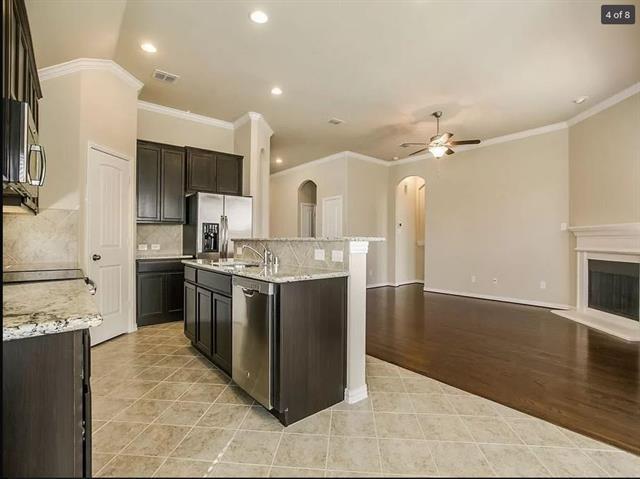 Gorgeous 4-bedroom, 2.5-bath home in Prosper’s highly sought-after master-planned community of Artesia! This home shows like a model and features an open-concept floor plan with extensive hardwood flooring and a cozy fireplace, perfect for both everyday living and entertaining. The chef’s kitchen is equipped with stainless steel appliances, granite countertops, and ample cabinetry, seamlessly connecting to the main living areas. A formal dining room adds elegance for hosting, while the thoughtfully designed split-bedroom layout offers privacy, with the spacious primary suite tucked away at the back of the home. A convenient half bath is ideal for guests.Step outside to a private backyard retreat featuring a covered patio with a ceiling fan, perfect for relaxing or entertaining year-round. Energy-efficient upgrades include a radiant barrier and Low-E windows for added comfort and savings. Located in a vibrant community with fantastic amenities, this home truly has it all!
