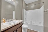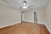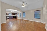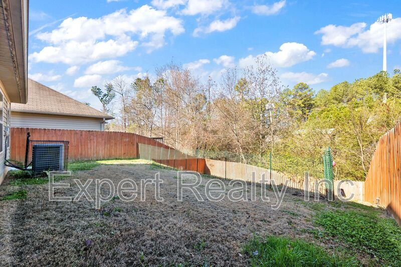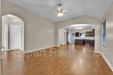 This gorgeous home features an open floorplan with numerous touches above the average! The home boasts beautiful warm toned laminate hardwoods throughout the living, kitchen and primary bedroom. The living room is well designed to accommodate large furniture. The arched openings add to the spacious feel. In addition to a dining area, the kitchen has a breakfast bar. There is an enormous amount of cabinet and countertop space and rental includes stainless steel appliances – refrigerator, stove, microwave and dishwasher. This is a split bedroom floor plan with the primary bedroom and ensuite bathroom to the back for maximum privacy. The walk in closet is fabulous! The two other bedrooms are spacious with good closet space as well, are carpeted and share a hall bathroom. Laundry is off the kitchen area in its own private room. The backyard is fenced with a tiered area - possibly perfect for a garden. Home is central air and heat. There are two parking pads in front. Tenant is responsible for all utilities, lawn, trash and pest control.