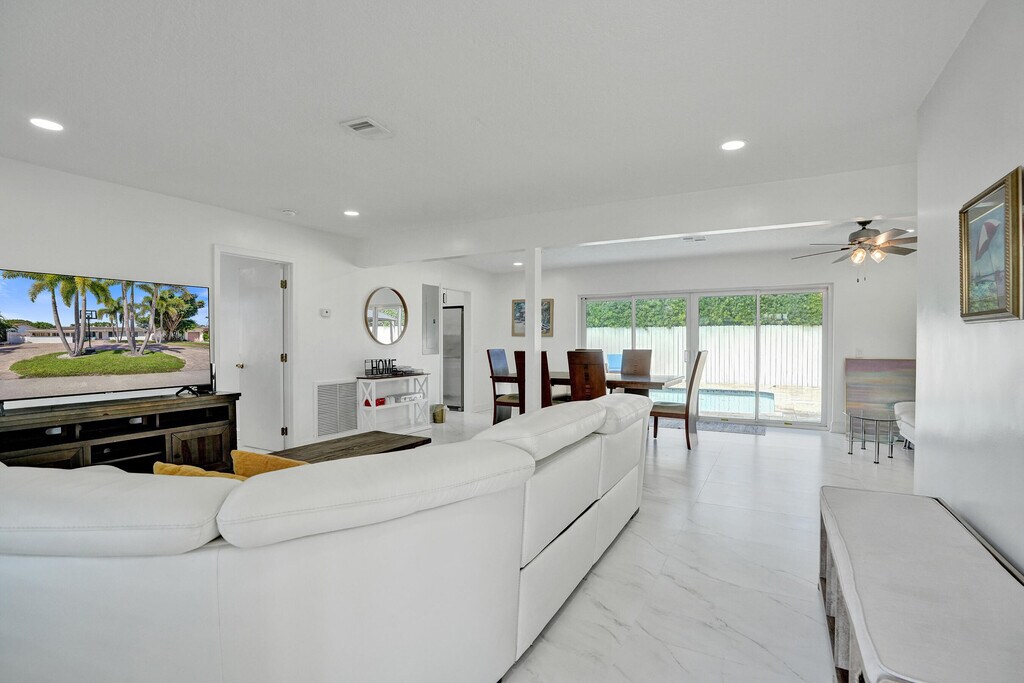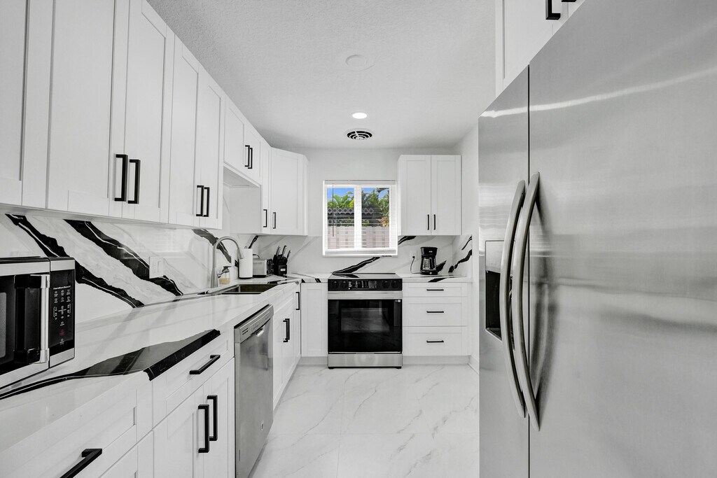 Welcome to The Cove, Deerfield Beach, and the finer things in life!! Annual or *Monthly Lease available for this newly renovated, tastefully furnished, spacious , well-lit 4 bedroom, 2 bathroom home just a mile from the beach. New floors, new fixtures, new furnishings! Enjoy entertainment outdoors while cooking at the grill, relaxing by gazebo, or dipping in the salted heated pool. Home is conveniently located, within a mile or so from Deerfield Beach, a park /playground area for the children, several nearby shopping centers, and fine dining from the local eateries. *subject to seasonal rates