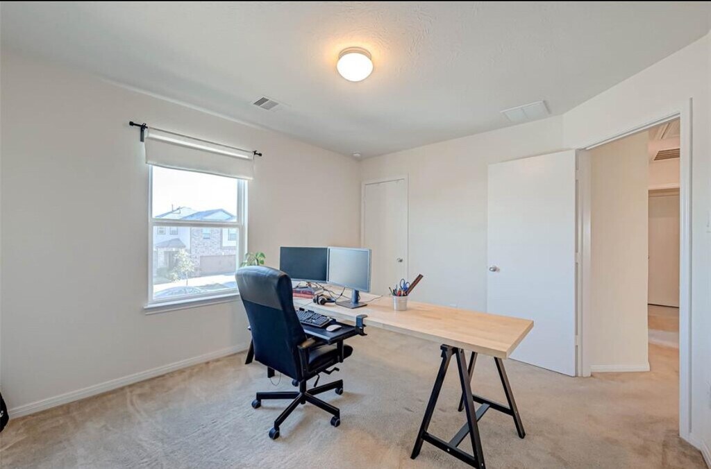 Short Term/6 Months Rental Terms !Beautiful home with elegant and modern upgrades throughout. This tastefully designed open-concept home features lovely engineered wood floors,modern light fixtures,and walls of windows with crisp white window coverings with flat black hardware.The spacious kitchen boasts a huge island,dark cabinets with white quartz countertops,modern stainless cabinet door pulls and an abundance of cabinet space.The downstairs is bright,open and airy giving a cozy home feel.The staircase features black iron rails and lush carpet leading to the upstairs flex room space. The Primary bedroom features plush carpet,ceiling fan,and a spacious closet.The primary bathroom features white quartz countertops and modern shaker cabinetry. The second and third bedrooms feature plush carpet & spacious closets.Enjoy the your coffee or cocktail in the large backyard with NO BACK NEIGHBORS for added privacy.Location offer easy access to Hwy. 290,Beltway 8 & Grand Parkway. MLS# 85637895