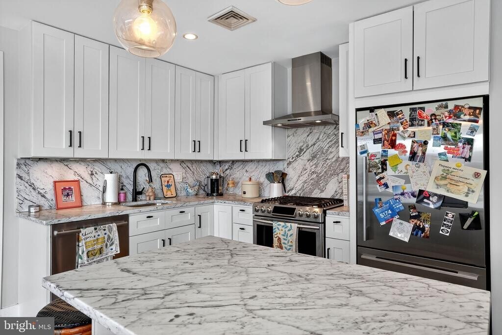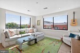 Corner two-bedroom, two-bath residence at The Aston, ideally located in the heart of Logan Circle, complete with one garage parking space. This light-filled home offers three exposures, an open and functional floor plan, hardwood flooring throughout, and large windows that bring in abundant natural light. The updated kitchen features marble countertops and backsplash, stainless-steel appliances, and a center island with seating and modern lighting. The kitchen opens to the living and dining areas, creating a comfortable and versatile space for everyday living and entertaining. The living area features floor-to-ceiling windows, a Juliet balcony, and city and monument views. The primary bedroom offers a private, usable balcony with sunset views, a walk-in closet, and an en-suite bathroom. A second bedroom and full hall bath provide flexibility for guests, office, or additional living space. Additional highlights include custom closet systems and a convenient in-unit washer and dryer. The Aston is a professionally managed, pet-friendly boutique building constructed in 2013, offering bike storage and low monthly condo fees. The location provides exceptional access to neighborhood amenities including Whole Foods, Trader Joe’s, Amazon Fresh, restaurants, fitness studios, and retail along the 14th Street corridor. Situated between Dupont Circle and Shaw, residents enjoy proximity to Logan Circle, Meridian Hill Park, and multiple Metro stations, including Dupont Circle, Shaw, Mount Vernon Square, and U Street, all within approximately one mile. Recent improvements to the 14th Street Streetscape and updates to Logan Circle Park further enhance walkability, safety, and overall neighborhood appeal.