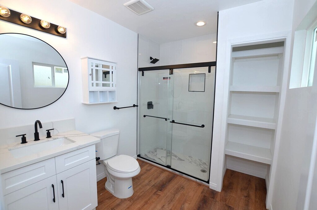 Single story home, renovated kitchen and bathrooms, New Stainless Steel Appliances new vinyl plank flooring, new windows, 1/2 block from Glorietta Blvd golf course, separate storage building the size of 2 car garage and driveway. large backyard.