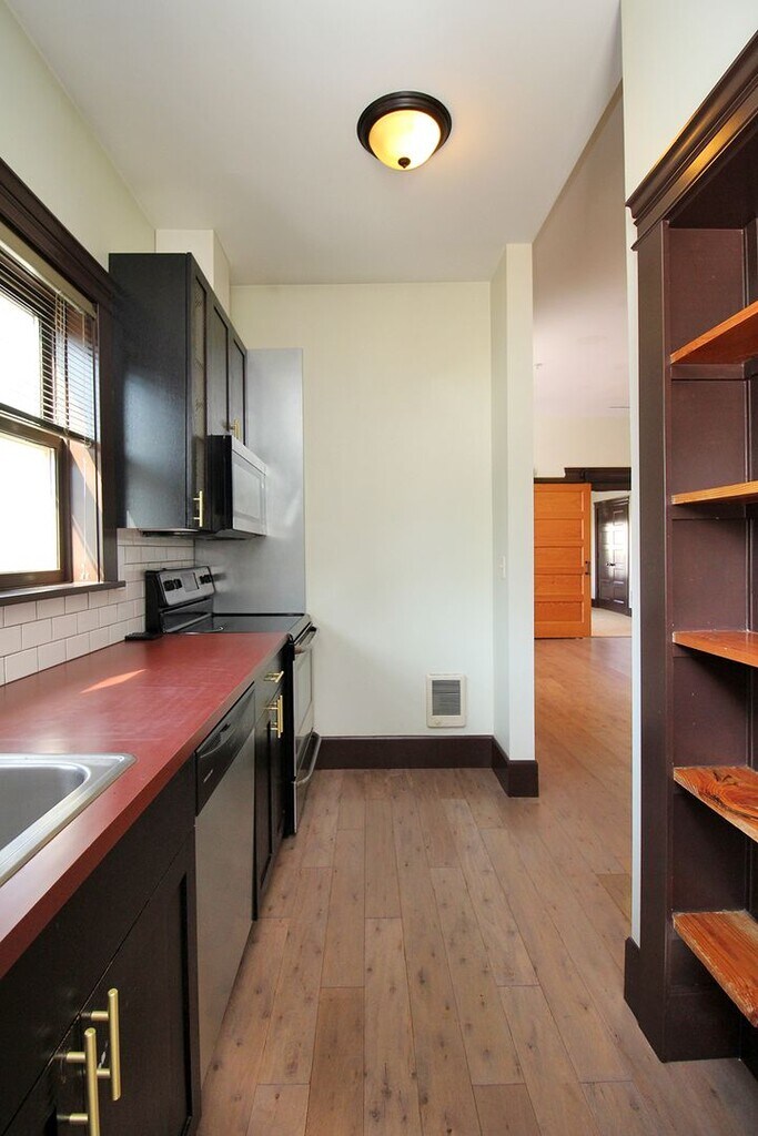 Charming, updated 2 Bedroom Apartment Home in the historic 1905 A. H. Moore House in a Prime NW District location! Features Include: • 2 spacious Bedrooms • 1 Bathroom • Fully updated main floor unit in a beautifully maintained historic building • Victorian styling with modern industrial accents • New wood flooring and carpet • New fixtures and ceiling fans • Spacious Living Room with bay windows • Updated Kitchen with custom cabinetry, subway tile back splashes and stainless appliances • Large front Bedroom has reclaimed sliding barn-style door and large closet • Updated Bathroom with Marmoleum flooring • Stacked washer/dryer • Small, private back deck • Large shared front porch and front garden sitting area • Amazing NW PDX location, located on a quiet block but close to so much! • A short walk up to NW 21st/23rd Aves or down to the Pearl District • Walk Score = 98 / Bike Score = 96!!! $100 Monthly Utility Surcharge for Water/Sewer *** RENT SPECIAL *** One month free with approved credit on a 12 month lease! *** Make this one-of-a-kind home yours! *** Credit applied after move-in * - Renter's Insurance Required - * Pets Negotiable ** Note: This unit is not ADA compliant *** Per City of Portland/Multnomah County law, we cannot accept applications for this property until 2:00pm on Thursday, November 13th. Any application submitted before that day and time will be considered received at 10:00pm on Thursday, November 13th as an 8 hour penalty.