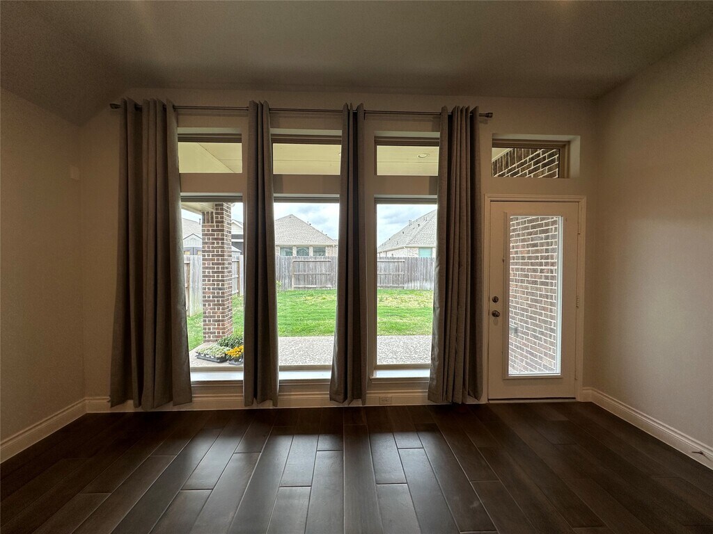 The house features three bedrooms and two bathrooms,with a study/office enclosed by glass French doors. It includes a camera home monitor and a mudroom adjacent to the two-car garage. The kitchen boasts a large island with a gas-top oven,along with a microwave and dishwasher. Additionally,there's a walk-in pantry. The living/dining area is spacious with plenty of natural light streaming in through numerous windows. The primary bedroom features double sinks,a stand-alone shower,a garden bathtub,and a walk-in closet. A hallway connects to the two additional bedrooms,a secondary bathroom,and a storage closet. Outside,there's a fenced backyard with a covered patio. Trash pick-up is included,and the property is located in The Groves subdivision,providing access to a community pool and playground. With nearby shopping available. *Online apps only,please submit all required documents at time of application*$100,000 Liability to Landlord Insurance Policy Required*RBP-$49.95/mo. MLS# 56972545