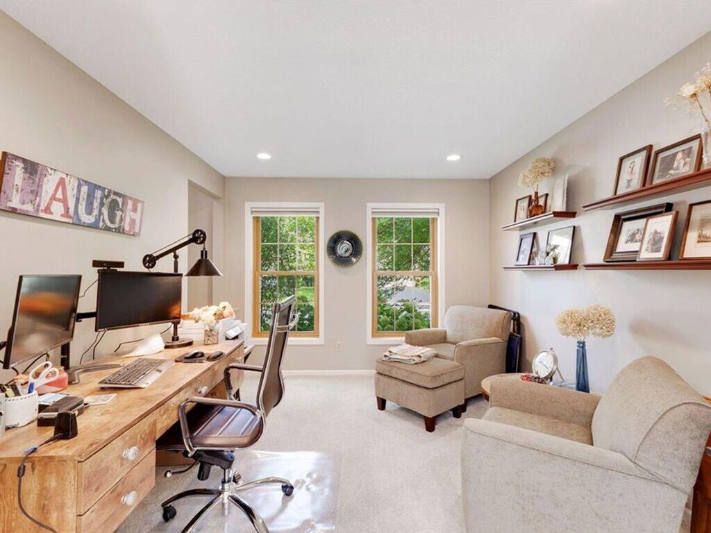 Move right in to this spacious, never-before-rented, sparkling clean 2-story in upscale Prior Lake! Welcome guests in the Grand Entry Foyer, then head upstairs to 3 Bedrooms on the Upper Level including Large Primary Suite with Like-New Bath. Another gorgeous Full Bath serves the other 2 Bedrooms. Main Level has Living Room with Fireplace and a wall of windows to the back yard, Fabulous Vaulted Sunroom, Office, Gourmet Kitchen with Upgraded Appliances and Cabinetry, Quartz Countertops, Butler's Pantry, Main Level Mudroom, Fourth Bathroom and Main Level Laundry. Finished Lower Level has Huge Family Room, Full Bath and Bedroom Four. Back Yard has Large Patio, nice and flat for sports or just enjoying nature. Available February 20! Your Well-Behaved Dog(s) Welcome on approval! Tenant responsible for all utilities, lawn care and snow removal. Application Fee: $55, Lease Processing Fee: $150, Security Deposit: $3,295
