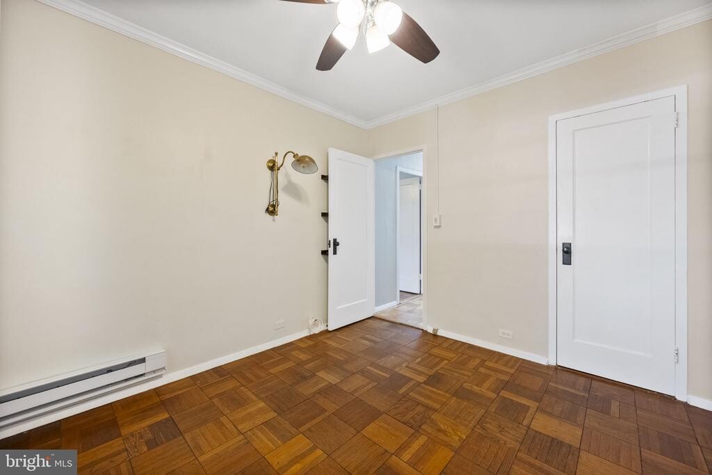 IMMEDIATE AVAILABILITY! Welcome to the lovely community of Parkfairfax, and this charming 2-bedroom townhouse-style condo with private entrance, in-unit washer and dryer, and a spacious brick patio. Upon entry enjoy gleaming parquet wood floors, and loads of natural light thanks to a South-facing orientation and windows throughout the main floor. The updated kitchen is sensational with beautiful quartz counters, shaker cabinets, and stainless appliances, including a gas range and gorgeous subway tile backsplash. The dedicated dining area off of the kitchen flows seamlessly into the open living area and also overlooks the rear patio which is private to the unit. Upstairs you'll enjoy two large bedrooms and an updated shared bathroom with subway tile shower surround. There is no lack of closet space as there are multiple closets in each bedroom, in addition to a linen closet, coat closet, and also a pantry space. You'll also appreciate the in-unit stackable full-size washer and dryer! The Parkfairfax community includes pool access, playgrounds, a community center, walking paths, and easy parking directly in front. Pets will be considered on a case-by-case basis. Conveniently located within minutes of multiple grocery stores, and other shops and restaurants in Shirlington and Bradlee Shopping Center, an easy commute to the Old Town, Pentagon, Pentagon City, and DC make this an incredible location to call home!