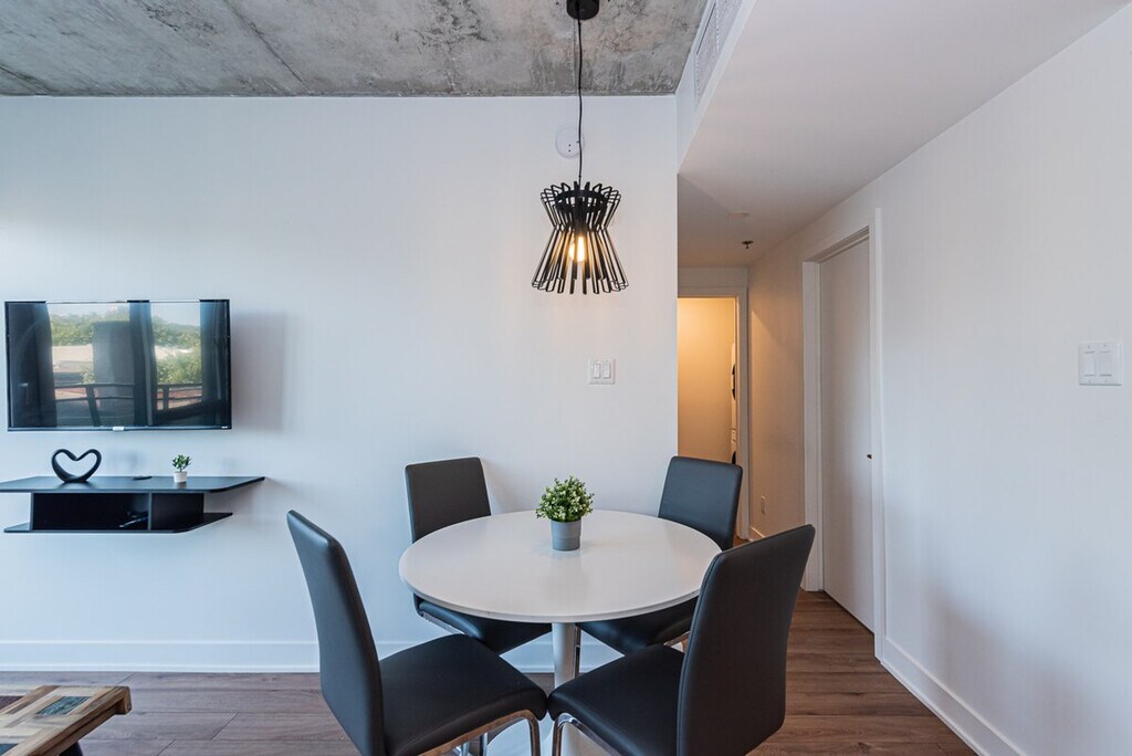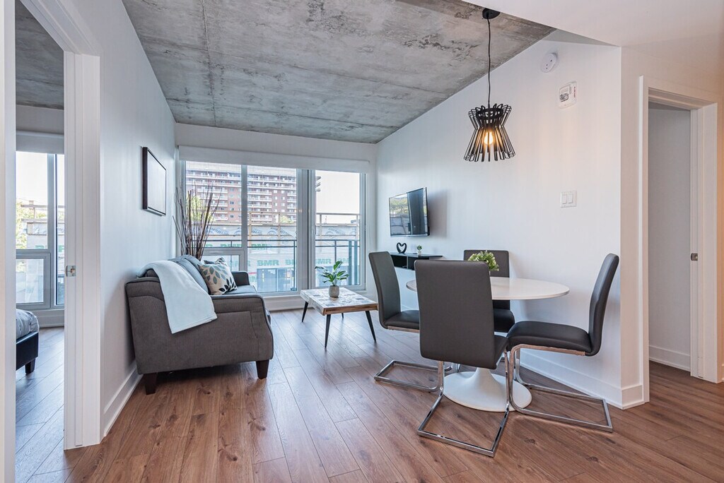 This remarkable addition to Montreal's skyline offers an unparalleled location for those eager to immerse themselves in the city's vibrant energy. Situated close to key landmarks such as the Berri-UQAM Metro Station, UQAM campus, Emilie-Gamelin Park, and bustling St-Catherine Street, this apartment provides seamless access to transportation, education, green spaces, and entertainment. Located near the Berri–UQAM station, it is just a 5-minute walk away. This lovely apartment features two bedrooms with two double beds and one bathroom, ensuring a comfortable stay. Indoor parking is available with in and out privileges. If you need parking, please let us know in advance to check our availability. This service has a separate fee depending on your length of stay. We offer a variety of cleaning services that include bi-weekly or monthly options. If you require this service, please contact us for more information. This service has an extra charge. Situated close to key landmarks such as the Berri-UQAM Metro Station, UQAM campus, Emilie-Gamelin Park, and bustling St-Catherine Street, this apartment provides seamless access to transportation, education, green spaces, and entertainment. No parties of any kind or loud noises that can alter the harmony of residents are allowed. No smoking, including cannabis and cigarettes, is permitted inside the apartment, balcony, or the building. Please care about your home away from home. [SI]