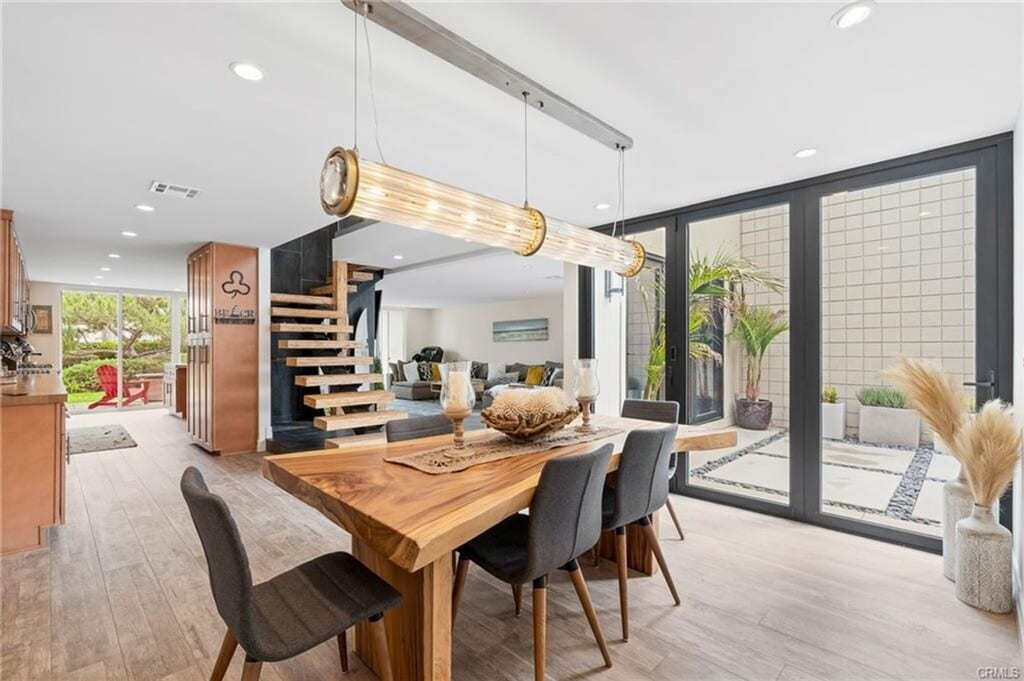 This thoughtfully re-imagined Huntington Harbor townhome epitomizes the pinnacle of contemporary coastal living. The experience begins as you step into the recently hardscaped front courtyard, a tranquil space that foreshadows the luxurious atmosphere within. Dual trifold accordion doors create a seamless blend of indoor and outdoor living, allowing natural light and the refreshing ocean breeze to fill the home. The remodeled kitchen is a haven for culinary enthusiasts, featuring ample storage, butcher block countertops, a central dining island, and state-of-the-art Jenn Air stainless steel appliances. The central living area is a masterpiece, highlighted by a floating wood staircase adorned with glass landing rails. Ascending to the second level reveals two bedrooms, each offering breathtaking harbor views overlooking Humboldt Beach. Additionally, a converted media room awaits, complete with distressed wood accent walls, eclectic lighting fixtures, and an open wood beam ceiling. A third-story loft with a vaulted wood beam ceiling presents a versatile space, perfect for an additional guest bedroom or a home office. The remodeled bathrooms are showcases of contemporary elegance, boasting luxury bidet toilets, dual vanities, custom steampunk lighting, and expansive walk-in showers. The rear patio, accessible through dual sliders, provides a serene retreat where you can unwind while soaking in the harbor's tranquility. This space is not only for relaxation but also serves as a gateway to various water activities—kayaking, paddleboarding, fishing, and boating are at your fingertips. Option to lease a private 30-foot boat dock for additional fee. This Huntington Harbor home invites you to abandon yourself in a lifestyle of both luxury and adventure. Every detail has been meticulously crafted to ensure comfort, convenience, and a profound connection to the stunning natural surroundings. Whether you seek a peaceful escape or an active waterfront lifestyle, this residence seamlessly blends the two, offering a residence that is both a sanctuary and an invitation to explore the beauty of coastal living. No pets. No smoking. 12 month lease agreement. Renters insurance required. Eligible applicants will have a minimum credit score of 720 and verified income of 3 times the monthly rent. Prices and availability subject to change without notice. Although we try to assure accuracy, Coastal Realty Management will not be held responsible for typographical or photo errors. Security deposit amounts are based on approved application; amount subject to change.