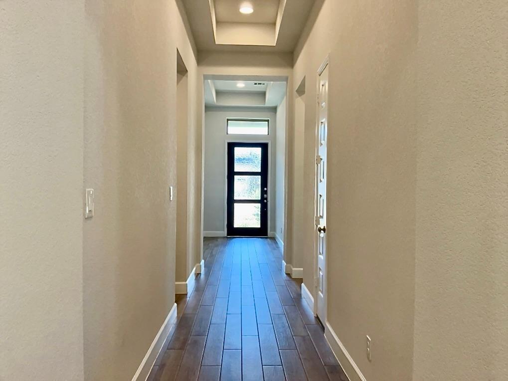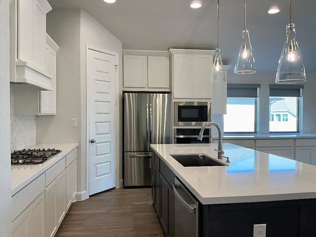 Welcome to this beautifully designed single-story home offering four spacious bedrooms and three full bathrooms. The open, flexible layout is ideal for comfortable living and entertaining, highlighted by two private primary suites that provide exceptional versatility. The kitchen is a true focal point, featuring a large center island, stainless steel appliances, breakfast bar, and additional cabinetry in the dining area—perfect for serving and entertaining. A stylish tile backsplash, under-cabinet accent lighting, and pendant lights add warmth and charm. The kitchen opens seamlessly to the dining and living areas, all with views of the backyard. The primary suite offers a generous bedroom, soaking tub, dual vanities, step-in shower, and two walk-in closets. A second bedroom includes its own en suite bathroom, providing privacy for guests or family members. Two additional bedrooms offer flexibility for home offices, hobbies, or additional living space. A versatile landing area creates a convenient spot to organize daily essentials or unwind at the end of the day. Step outside to the large covered patio—an inviting space for outdoor dining and enjoying Texas evenings. Additional highlights include a two-car garage, ample storage, and thoughtful design touches throughout. This home truly has it all, combining space, comfort, and functionality in a prime location. MLS ID 2976050