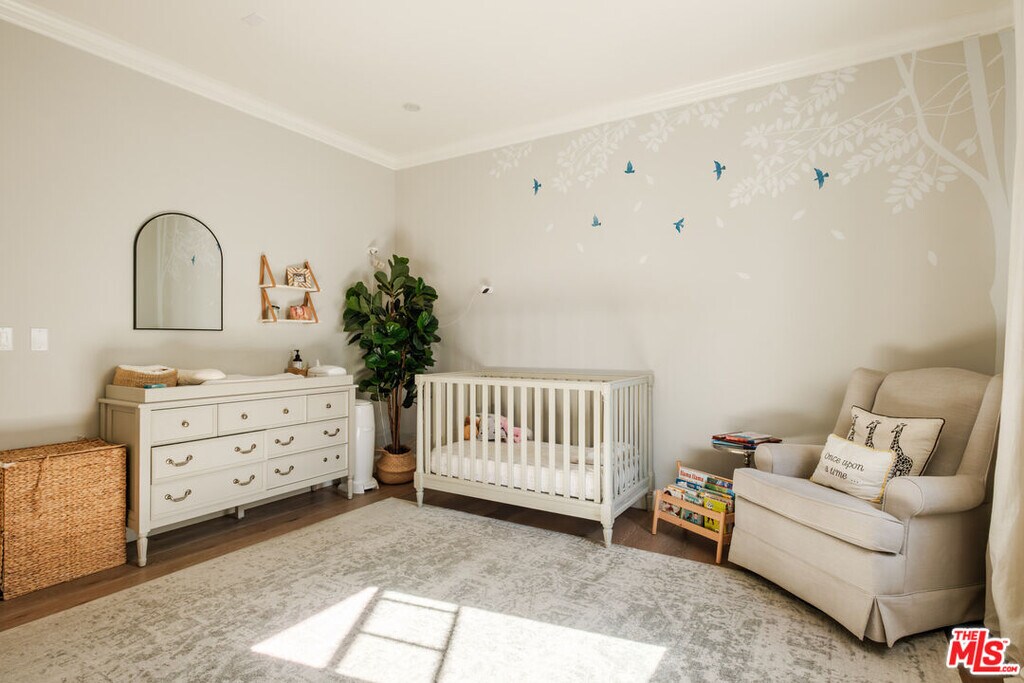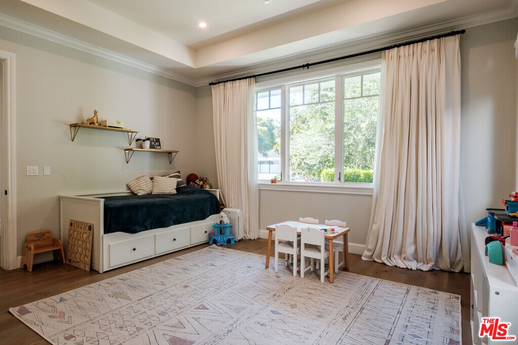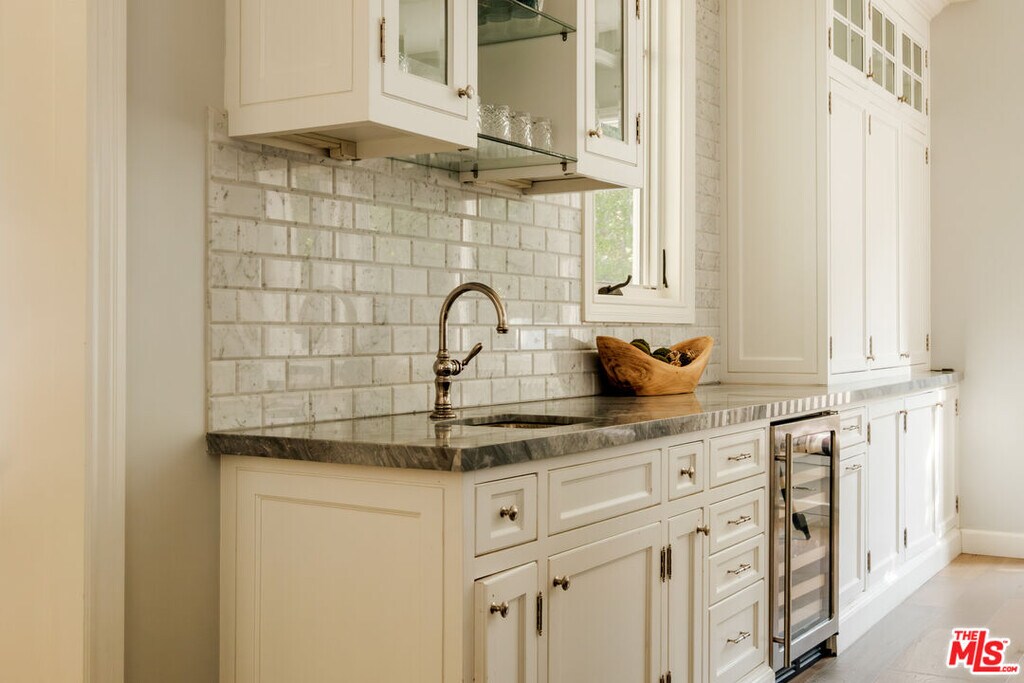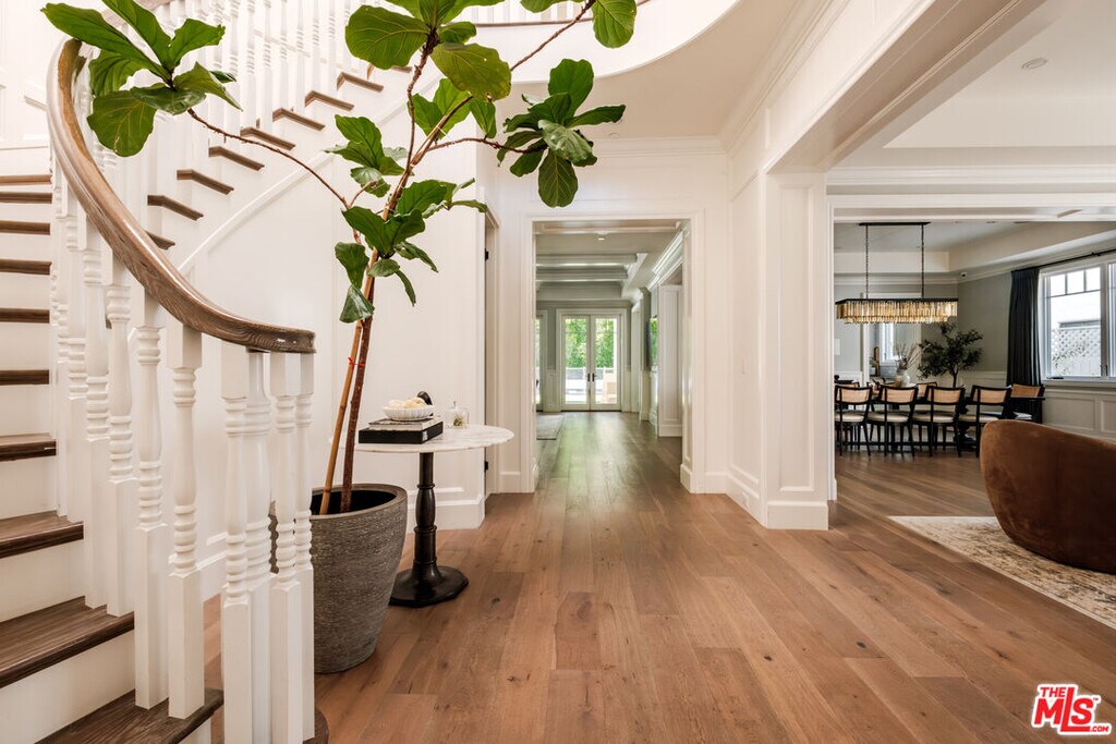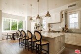 Set within one of Westwood's most coveted neighborhoods, this exquisite custom-built residence blends timeless traditional architecture with modern luxury. Spanning over 5,000 square feet, the home welcomes with warm wood floors, bespoke millwork, and coffered ceilings that exude sophistication and craftsmanship at every turn. The formal living and dining rooms provide convenient access to a wine cellar, creating an ideal space for entertaining. Just beyond, the sunlit family room opens through French doors to a covered stone patio with an exterior fireplace, for effortless indoor-outdoor living. At the heart of the home lies a gourmet chef's kitchen, adorned with striking stone countertops, a seated island, and premium appliances, including a Wolf gas range and double ovens. The space also boasts a full-sized refrigerator and freezer, abundant pantry storage, and a charming breakfast banquette overlooking the backyard. Ascend the curved stairway to the expansive primary suite. This private sanctuary impresses with vaulted ceilings, a balcony, and dual custom walk-in closets. The spa-inspired en suite bath is a serene retreat with dual vanities, dual separate water closets, a glass-enclosed shower, and a luxurious soaking tub. Find three additional bedroom suites upstairs, plus one conveniently located on the main level, providing flexibility for guests or use as an office. Additional amenities include a powder room on the main level, built-in surround sound, and solar panels with three Tesla batteries for sustainable living. Outside, the lush backyard is enveloped by mature hedging and features a covered patio, built-in BBQ, sparkling pool and spa, and a spacious lawn for relaxation or play. Secured behind an automatic driveway gate is an attached two-car garage with newly epoxied floors and direct access. Ideally situated just moments from top-rated schools, Holmby Park, Westfield Century City, and Westwood Village, this remarkable home offers timeless sophistication, comfort, and convenience for the very best of Westside living. MLS# 25607141