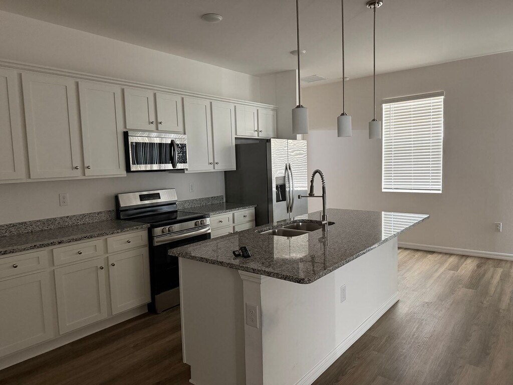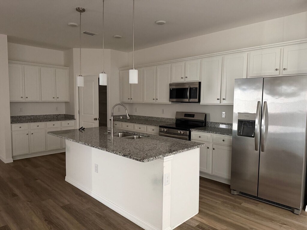 This home has a grand great room entrance into a beautiful open floor plan. You'll notice in the foyer, that the home has high (9'4") ceilings, a tray in both the great room and master, gorgeous LVP flooring throughout, granite countertops, stainless appliances, Hurricane IMPACT WINDOWS, and much more. The Master Suite two walk in closets and leads to the Master Bath with double sinks, soaker tub and an all tile shower. The second and third bedrooms share a large guest bath. All of the rooms are spacious and comfortable. If entertaining is your thing, the back sliders lead out to a huge covered lanai! By submitting your information on this page you consent to being contacted by the Property Manager and RentEngine via SMS, phone, or email.