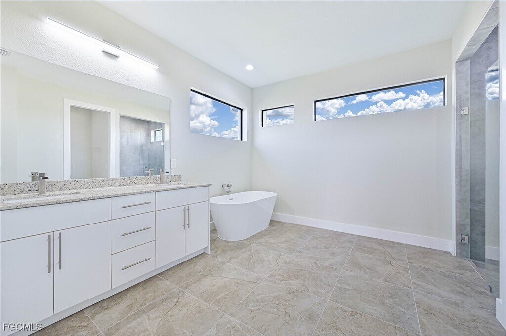 1638 NW 36th PL is a 3 bed 3.5 bath located in NW Cape just off Gulfstream Pkwy! This modern home built in 2023 has a flowing open concept and tons of natural light! Kitchen is equipped with all stainless steel appliances and plenty of storage space! NO CARPETS! Tile throughout the entire home! Get cozy in the master suite with the freestanding tub and walk in shower! Washer Dryer included PETS - No Pets Permitted