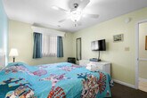 Feel at home in this stylish ground floor 2-bedroom condo, located just 1.5 miles from Surfside Beach. This spacious and comfortable condo features a fully stocked eat-in kitchen and a comfortable living room. The primary bedroom includes a king-size bed, a 40" flat screen TV with premium cable, an en suite bathroom, and a walk-in closet. The second bedroom has two comfortable double beds with a separate shower room and vanity/toilet room. Free parking is available on the premises. Experience the laid-back, family-friendly atmosphere of Surfside Beach while taking advantage of all the nearby restaurants and beach activities. The apartment is a quick 5-minute car ride to the Surfside Beaches. Guests must be 25 years of age or older to reserve. No smoking and no pets are allowed as per HOA regulations. Check-in is at 4:00 PM and check-out is at 10:00 AM. [SI]