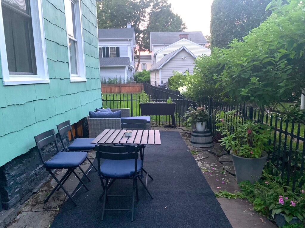 Bright and charming first-floor apartment in Uptown Kingston, only a three-minute walk to the thriving and historic Stockade District with its array of shops, restaurants, and amenities. While centrally located, this home is located on a quiet street, with views onto a beautiful and peaceful neighboring garden oasis. With two bedrooms and one bath, the apartment has high ceilings, large windows, ample closet space, dishwasher, in-unit washer/dryer and access to a semi-private outdoor patio. Utilities: water included, tenant pays separate electric & gas. Pets: Sorry, no dogs. (Cats only.) In addition to the Stockade District, the apartment is within walking distance of the Trailways bus station, Hannaford supermarket plaza, and the up-and-coming Midtown Arts District. By car, it is quick ride down to the waterfront and the Rondout, and easy access to the highway. Within ten minutes are nature preserves and hiking opportunities, cultural destinations, and convenient shopping centers. Kingston is a 90-minute drive to the GW bridge into Manhattan. Date Available: Feb 1st 2026. $2,100/month rent. $2,100 security deposit required. Please submit the form on this page or contact to learn more. Background check will be required of selected tenant.