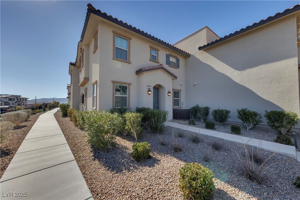 GORGEOUS 3 bedroom-2.5 bath located in SANTA ROSA BELLAMAR, NEWER SUMMERLIN COMMUNITY close proximity to popular schools and parks. Entertain & cook delicious meals in a GOURMET KITCHEN equipped with STAINLESS STEEL APPLIANCES, Mahogany Shaker cabinets and sparkling granite counters w/ island. Separate laundry room w/ W/D. Stunning unobstructed views of the Las Vegas Strip & serene mountains from the privacy of your own PANORMIC ROOFTOP DECK. This is corner elevated unit with unbeatable views. Conveniently located across from the Impressive and popular Fox Hills Park minutes from shopping & dining options at Red Rock Casino and Downtown Summerlin! Community has impressive amenities include huge pool, spa, lounge areas, BBQ/Picnic areas, firepit, and cornhole for their resident’s use. The two-car attached garage has plenty of room for your cars to park plus storage. Monthly landscape, sewer and trash included in the total periodic rent.